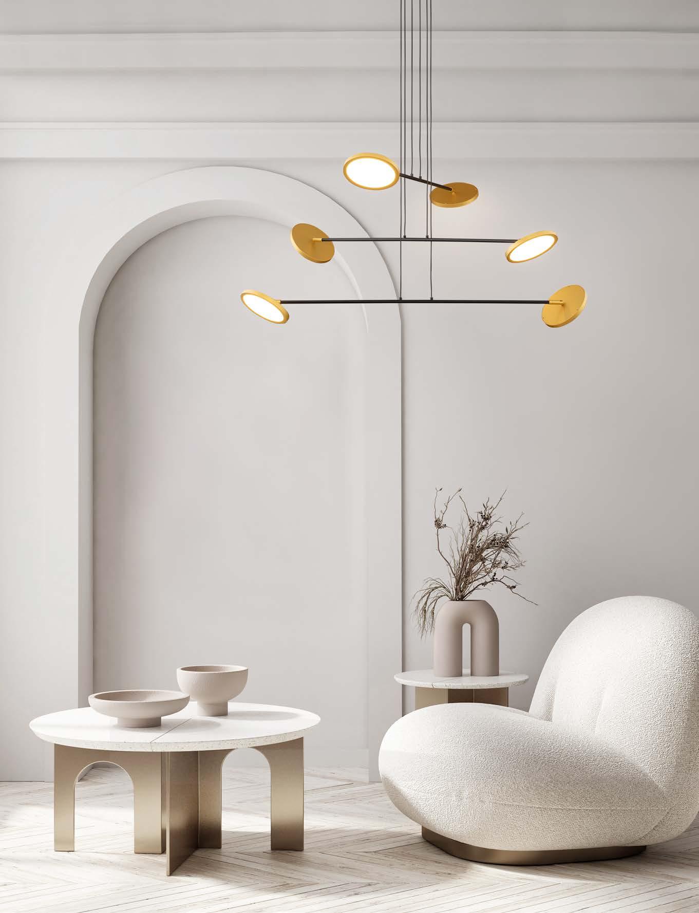 52 16 28 2 52 16 28 2 106 150 19 4.5 Gold Metal & Acrylic LED 84 Watt 230 Volt 3805Lm 3000K IP20 Included Remote Control L: 106 W: 58.5 H: 150 cm ATOMO ˙ 9180630 Triac Dimmable 75 36 30 4.5 Gold Metal & Acrylic LED 51 Watt 230 Volt 2751Lm 3000K IP20 L: 75 W: 68 H: 36 cm ATOMO ˙ 9180618 Triac Dimmable Black & Gold Metal & Acrylic LED 9 Watt 230 Volt 609Lm 3000K IP20 L: 28 W: 9 H: 52 cm ATOMO ˙ 9280674 Gold Metal & Acrylic LED 9 Watt 230 Volt 609Lm 3000K IP20 L: 28 W: 9 H: 52 cm ATOMO ˙ 9280673 Adjustable Height 9180630 Included Remote control
