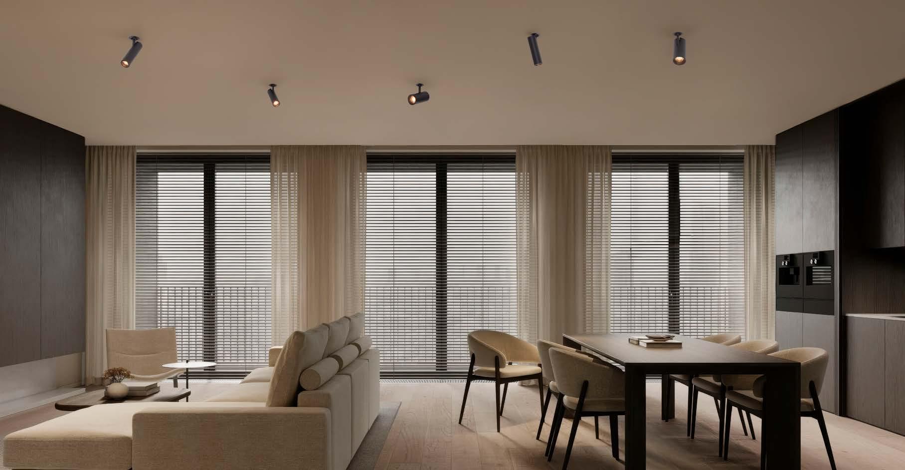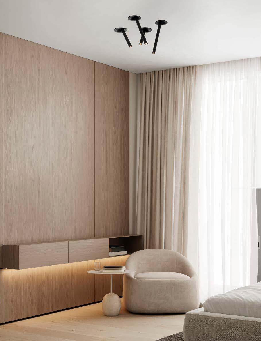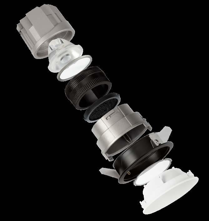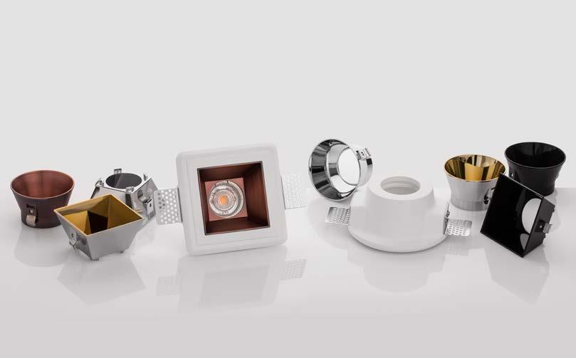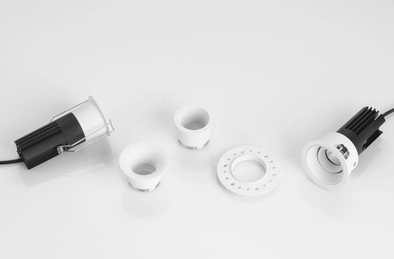 ONE DOWNLIGHT - INFINITE APPLICATIONS Introducing our next-generation modular downlight series, engineered and assembled in-house to deliver unparalleled flexibility, performance, and design precision. Available in two distinct versions — the "One" and the compact " MiniOne" — this system redefines architectural lighting with high efficiency outputs of up to 130 lm/W in the final product. Designed for versatility, it offers a broad range of trim color combinations, multiple Cut-Out sizes (from 25mm to 75mm), and both adjustable and fixed configurations to suit diverse installation needs. With IP54 protection options, UGR<17 and Darklight technology for the standard version, and innovative with special lens versions, this modular solution brings performance and aesthetics together seamlessly — making it the ideal choice for refined, modern interiors.
