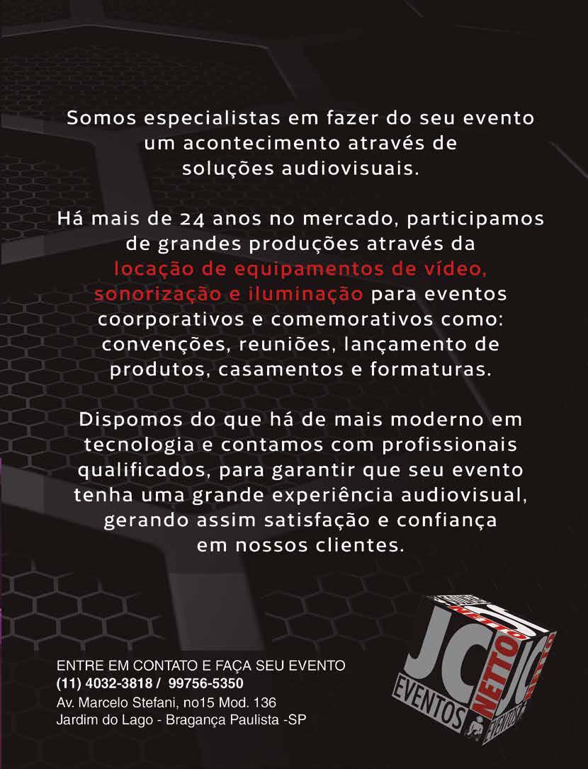 Jornalista Responsável: Edgar Bádue - MTB 0062252/SP Comercial: Eliana Pereira Redação: Letícia Bueno Diagramação: Matheus Araújo Designer Gráfico : Aysha Nunes e Mirela