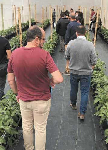 Grape, e uma estufa de pimentões vermelho e amarelo.