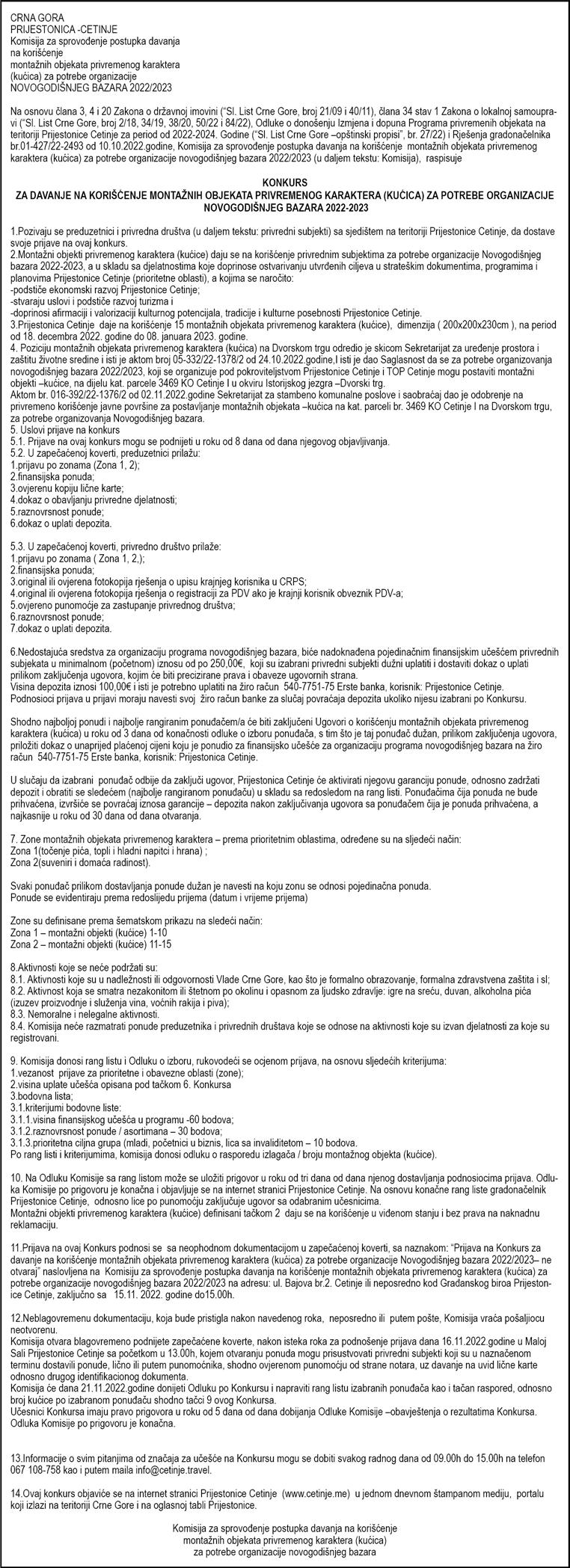 30 Poneđeljak, 7. novembar 2022. Oglasi i obavještenja