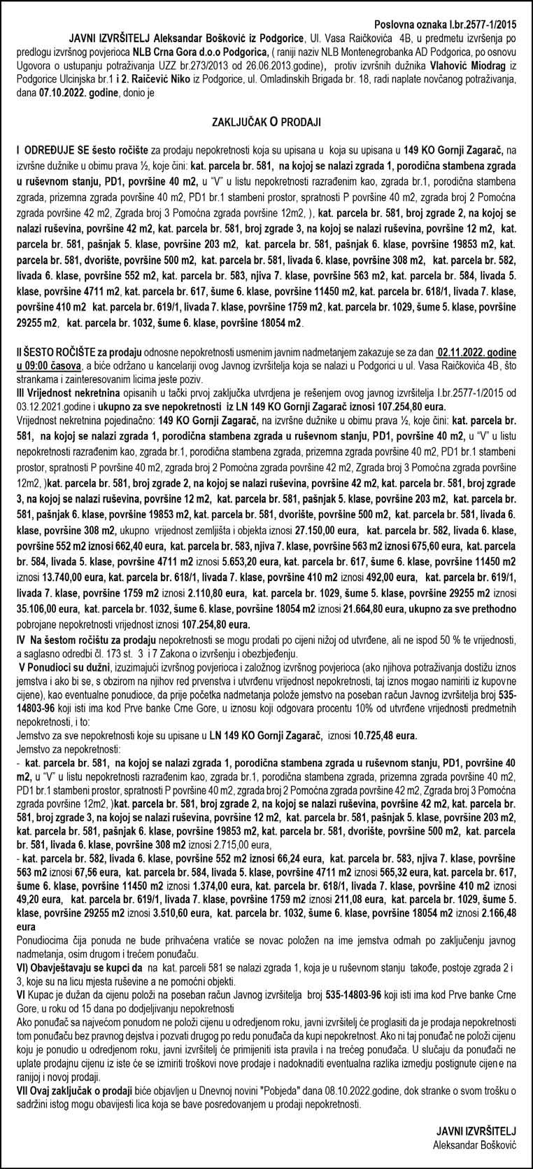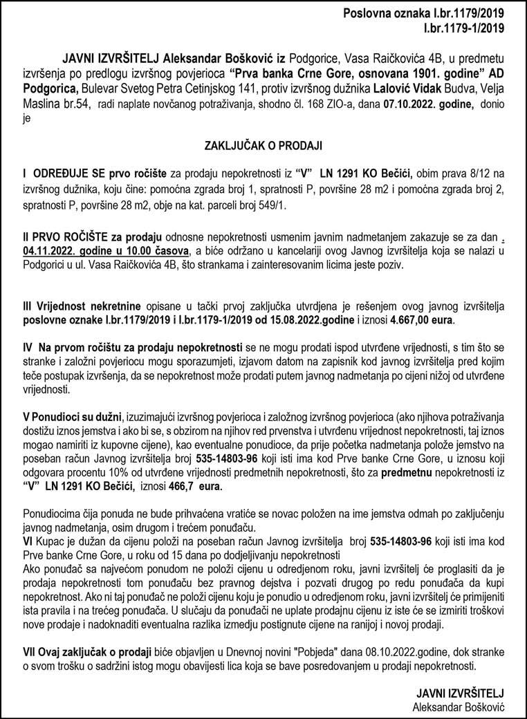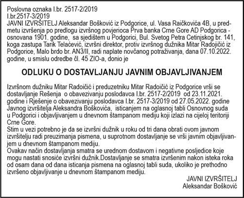 Žale za njim Stric VLADO i strina RADMILA 375 e-mail: oglasno@pobjeda.me