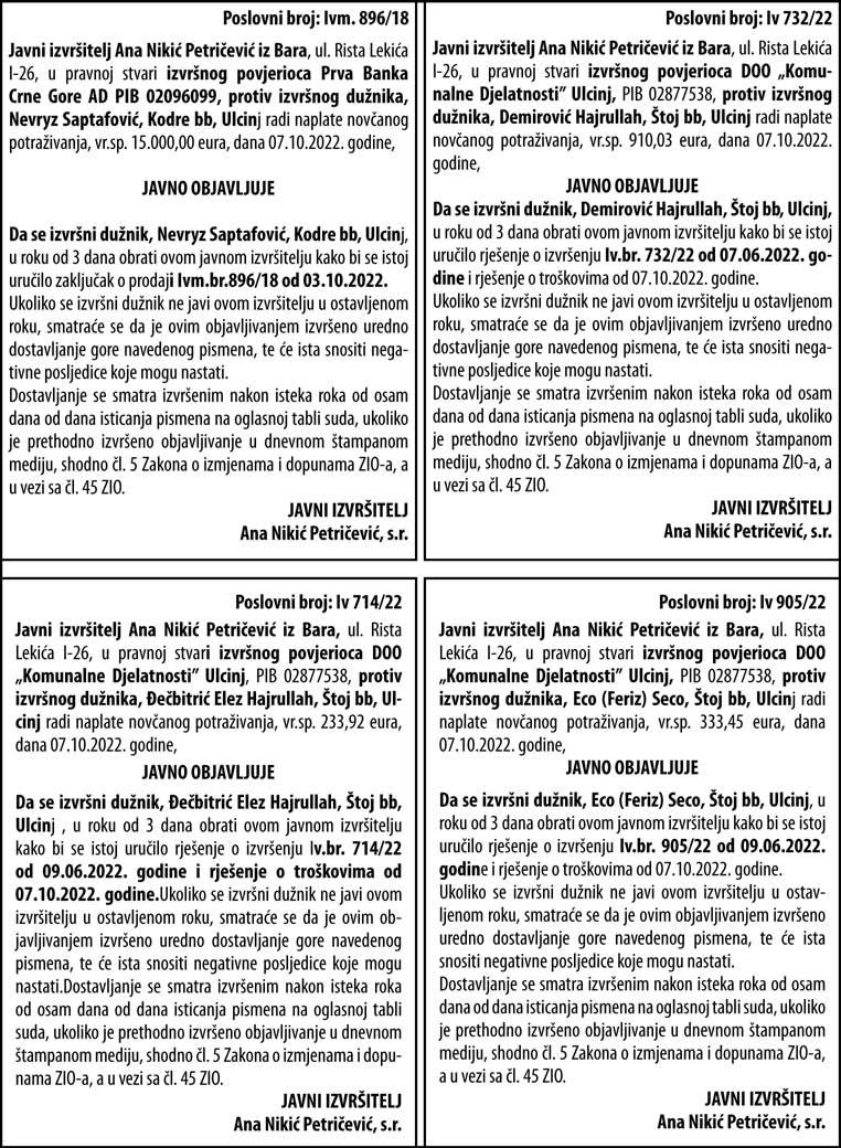 38 Subota, 8. oktobar 2022.Oglasi i obavještenja Драга наша БАБА Заувијек ћеш остати дио наших најљепших сјећања. Твоји: МАРКО, ВЛАДАН, МИРА, МАРИЈА 336 Драга моја МАМА Ни ова година, нити иједна наредна неће ублажити бол због твог одласка. У сваком дану си присутна кроз лијепа сјећања и драге успомене. Чувамо и његујемо све што смо са тобом подијелили, тако да те ни твоји најмлађи нијесу заборавили. Твоја ДУЛА 337 Дана 10. октобра 2022. навршава се година од смрти наше драге МИЛУШЕ Новове ЖУГИЋ рођ. Пајовић У недјељу, 9. октобра у 11 часова, породица ће посјетити гроб наше драге Милуше. Кћерка ДУШАНКА РАДОВИЋ са породицом 335 SJEĆANJE