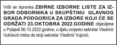 POBJEDE Đukanović: Vojska mora doprinijeti sigurnosti građana i stabilnosti države STR. 5. Stradala žena, traga se za dvoje djece Abazović hoće da zaustavi istragu o ruskim špijunima i državnom švercu cigareta