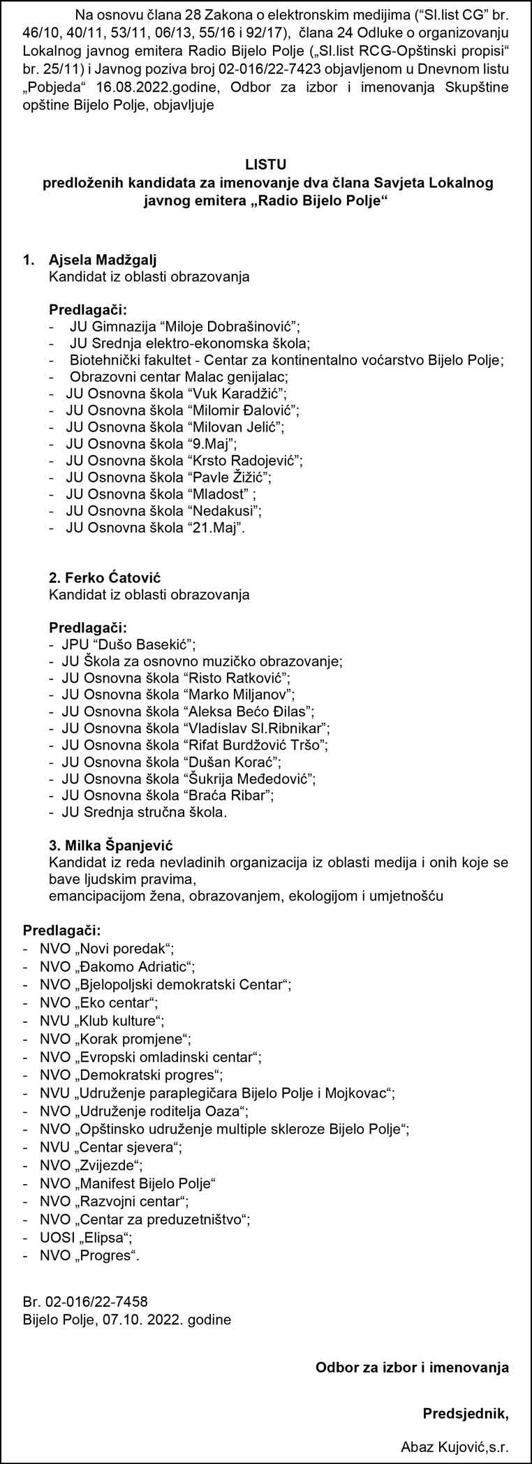 U našim srcima uvijek ćeš imati posebno mjesto. Počivaj u miru. Tvoji: brat VLADO i snaha MILENA sa porodicom 346 СЈЕЋАЊЕ Навршава се пола године и година и по од смрти од смрти ДРАГАНА БРАНИСЛАВА МИШКОВИЋ У безграничној тузи, с најдубљим болом, с непролазном љубављу и трајном сјећању. Сестра ВЕСНА КАНКАРАШ са породицом 340 Navršava se godina i po i pola godine od smrti naših dragih BRANISLAV – GARO DRAGAN – ŽABE MIŠKOVIĆ MIŠKOVIĆ Ne postoji vrijeme koje donosi zaborav, niti sjećanje u kojem vas nema. MILOŠ, MILORAD, BILJANA – ZOJA i JELENA MIŠKOVIĆ 347 ANA Teško je prihvatiti da te više nema. Neka tvoja plemenita i anđeoska duša nađe vječni mir. ACO i BILJA MILIĆEVIĆ 359 OGLASNO ODJELJENJE 020 202 455 “POBJEDA” 020 202 456