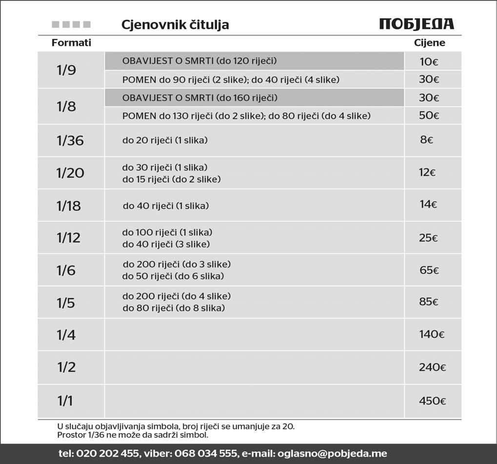 Četvrtak, 9. februar 2023. | Podgorica, Crna Gora | Godina LXXIX/Broj 20551 | Prvi broj izašao je 24. oktobra 1944. u Nikšiću | pobjeda.me | Cijena 0,70 eura