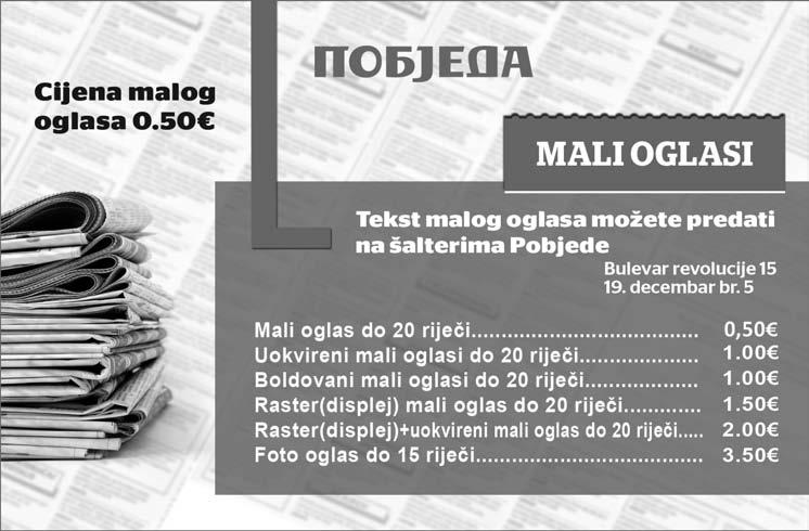 Petak, 10. februar 2023. | Podgorica, Crna Gora | Godina LXXIX/Broj 20552 | Prvi broj izašao je 24. oktobra 1944. u Nikšiću | pobjeda.me | Cijena 0,70 eura NE! RATU U UKRAJINI НІ! ВІЙНІ В УКРАЇНІ НЕТ! ВОЙНЕ В УКРАИНЕ NO! TO THE WAR IN UKRAINE