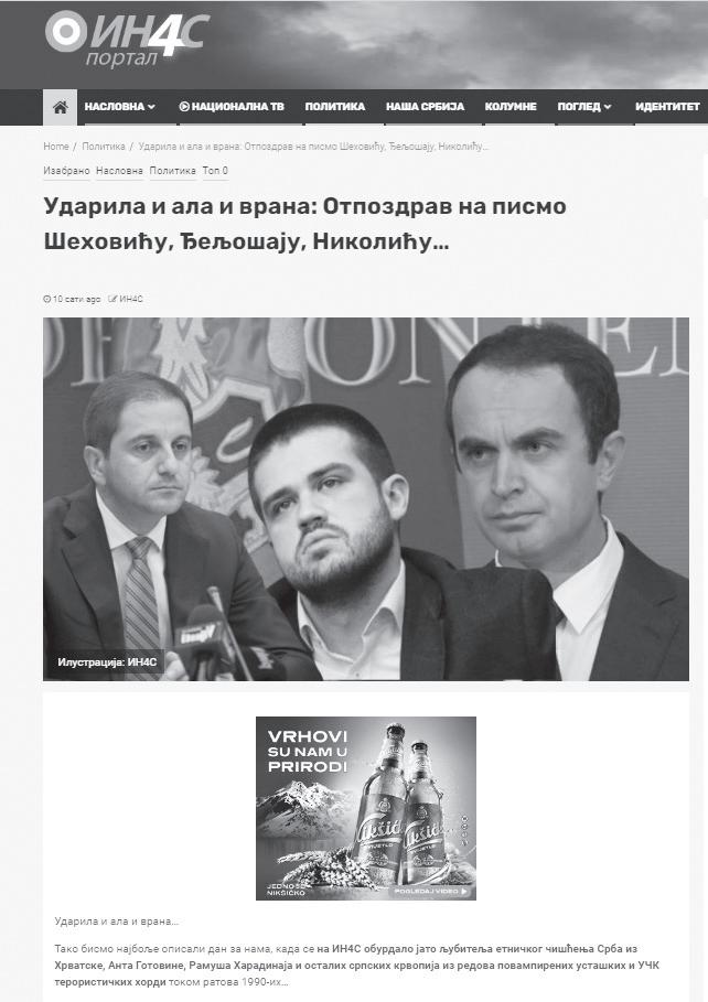 Narativ biva još otrovniji, pa se oni karakterišu kao „jato ljubitelja etničkog čišćenja Srba iz Hrvatske, Anta Gotovine, Ramuša Haradinaja i ostalih srpskih krvopija iz redova povampirenih ustaških i UČK terorističkih hordi tokom ratova 1990-ih“, uz podsjetnik da daju podršku „liderčiću HGI i Tuđmanovom i Pavelićevom klepetalu Adrijanu Vuksanoviću“.