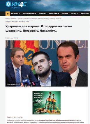 la IN4S i medij koji stoji na prvoj liniji odbrane slobodarskog naroda Crne Gore“, na tapeti su portparol Demokratske partije socijalista (DPS) Miloš Nikolić, lider Socijaldemokrata Crne Gore (SD) Damir Šehović, čelnik Albanske alternative i predsjednik Opštine Tuzi