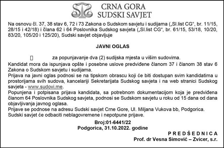 i dopunama Zakona o Pred sjedniku Crne Gore, podrža no glasovima 41 poslanika. - Na kraju, naglašavajući da bi posljedica mogućeg ponov nog izglasavanja spornog Za kona o izmjenama i dopuna ma Zakona o Predsjedniku Crne Gore na skupštinskom plenumu, i njegovog stupa nja na snagu u vrlo kratkom roku, mogla biti urušavanje ustavnog poretka Crne Go re i univerzalnih pravnih vri jednosti, šef države zatražio je da Venecijanska komisi ja dâ hitno mišljenje na ovaj zakon, koji je, kako je pozna to, vratio Skupštini Crne Go re na ponovno odlučivanjesaopštio je Bastijančić.