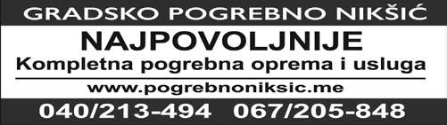 Saučešće primamo u kapeli pod Trebjesom – Nikšić, dana 18. oktobra od 12 do 16 časova i dana 19. oktobra od 11 do 15 časova kada će se obaviti sahrana na groblju pod Trebjesom.