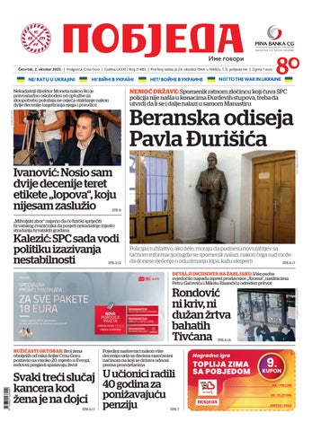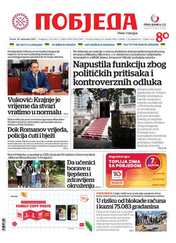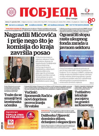 Subota, 24. februar 2024. | Podgorica, Crna Gora | Godina LXXX / Broj 20918 | Prvi broj izašao je 24. oktobra 1944. u Nikšiću | pobjeda.me | Cijena 0,70 eura