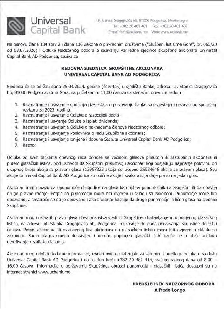 29 Neđelja, 24. mart 2024. Oglasi i obavještenja