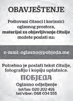 e-mail: oglasno@pobjeda.me 538