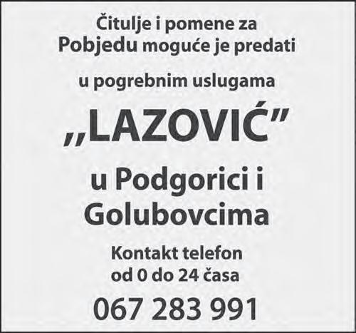 Vrijeme prolazi sjećanja na vas ne blijede. Uvijek ćete biti u našim srcima. U subotu 6. jula u 9 časova, porodica će posjetiti njihovu vječnu kuću. Umjesto pomena, dat je prilog Crkvenom odboru mjesne zajednice Meterizi. S ljubavlju i poštovanjem Vaši sinovi MIODRAG i ĐURO sa porodicama