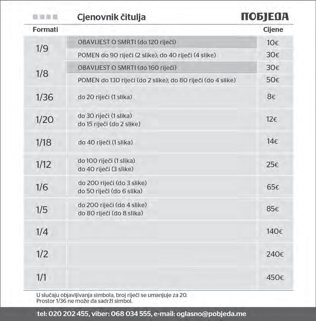 Subota, 17. avgust 2024. | Podgorica, Crna Gora | Godina LXXX / Broj 21086 | Prvi broj izašao je 24. oktobra 1944. u Nikšiću | pobjeda.me | Cijena 0,70 eura