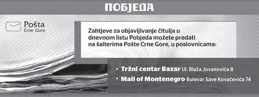Neđelja, 18. avgust 2024. | Podgorica, Crna Gora | Godina LXXX / Broj 21087 | Prvi broj izašao je 24. oktobra 1944. u Nikšiću | pobjeda.me | Cijena 0,70 eura NE! RATU U UKRAJINI