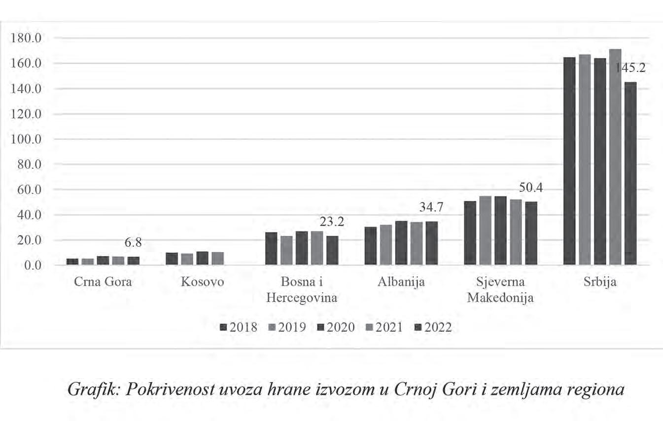 -Studija otkriva značajnu neravnotežu u trgovini hranom širom Zapadnog Balkana. Srbija se izdvaja kao jedina zemlja u regionu sa suficitom u trgovini hranom, dok se Crna Gora i Kosovo suočavaju sa značajnim deficitima. Na primjer, Crna Gora je u periodu od 2018. do 2022. godine u prosjeku imala uvoz hrane koji je bio 16 puta veći od izvoza, dok je u slučaju Kosova taj odnos bio deset puta veći. Ovaj trgovinski deficit uglavnom je rezultat velike zavisnosti zemlje od uvoza hrane kako bi zadovoljila domaću potražnju, posebno tokom vrhunca turističke sezone. Pored strukturnih izazova, studija naglašava upravo uticaj turističkog sektora na uvoz hrane – kaže se u studiji ISSP-a.
