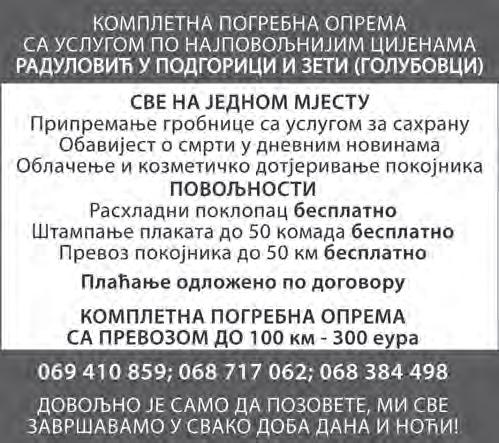Njegovu vječnu kuću posjetiti ćemo dana 15. septembra 2024. godine u 10 časova na seoskom groblju Ubli u Kučima. Ožalošćena porodica RADONJIĆ