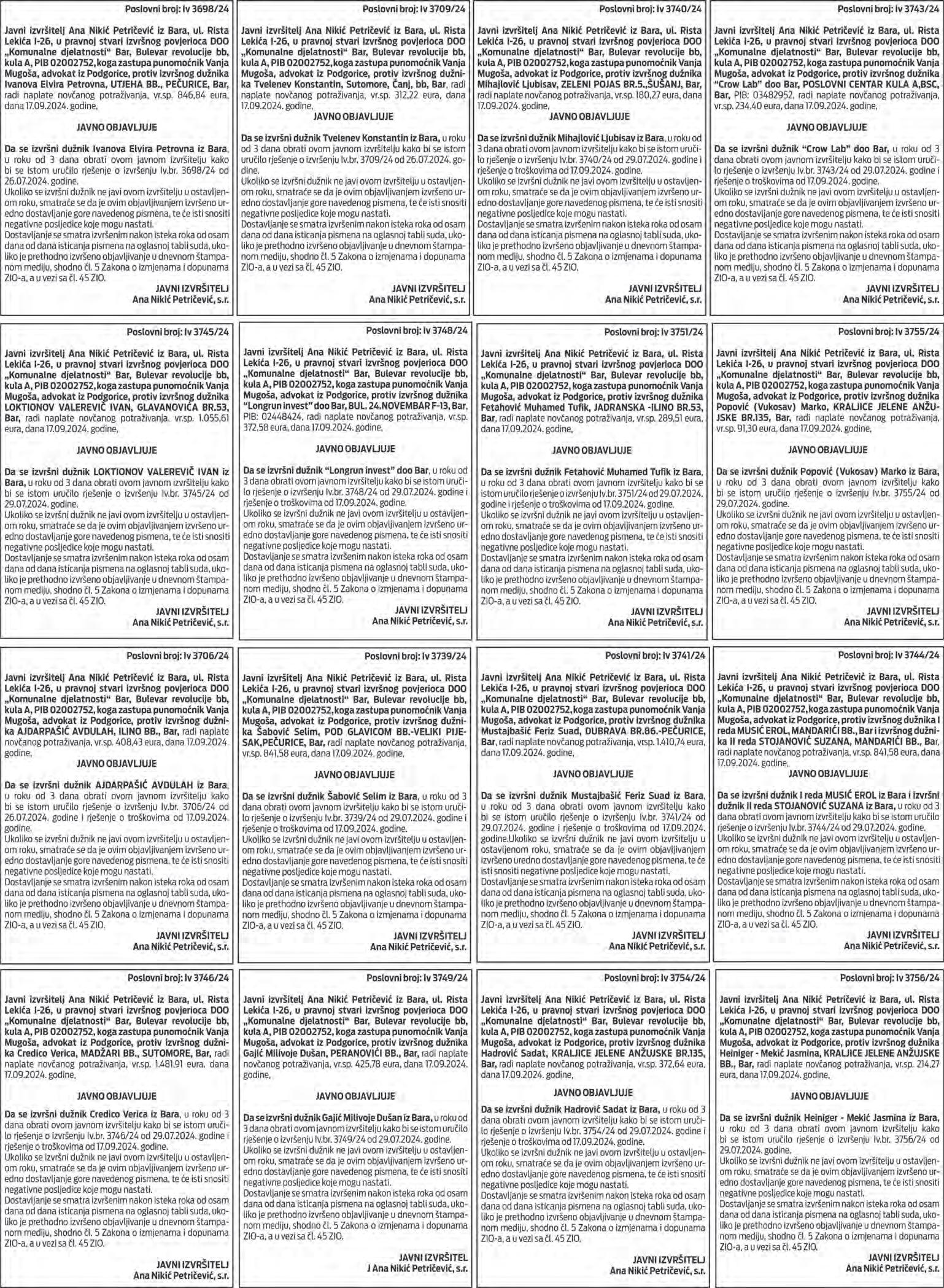 Broj: 09-322/24-upI-67/5 Sekretarka Sekretarijata Tivat, 16.09.2024. godine Milica Manojlović, dipl.ing.arh.
