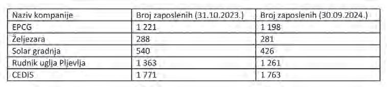 energetike Saša Mujović koji je na proteklim lokalnim izborima u Podgorici bio nosilac liste koalicije Pokreta Evropa sad i Demokrata dostavio je juče medijima na uvid podatke o broju zaposlenih u pet kompanija energetskog sektora: Elektroprivredi (EPCG), Željezari, Solar gradnji, Rudniku uglja i CEDIS-u.
