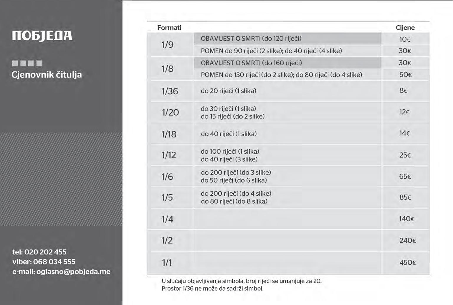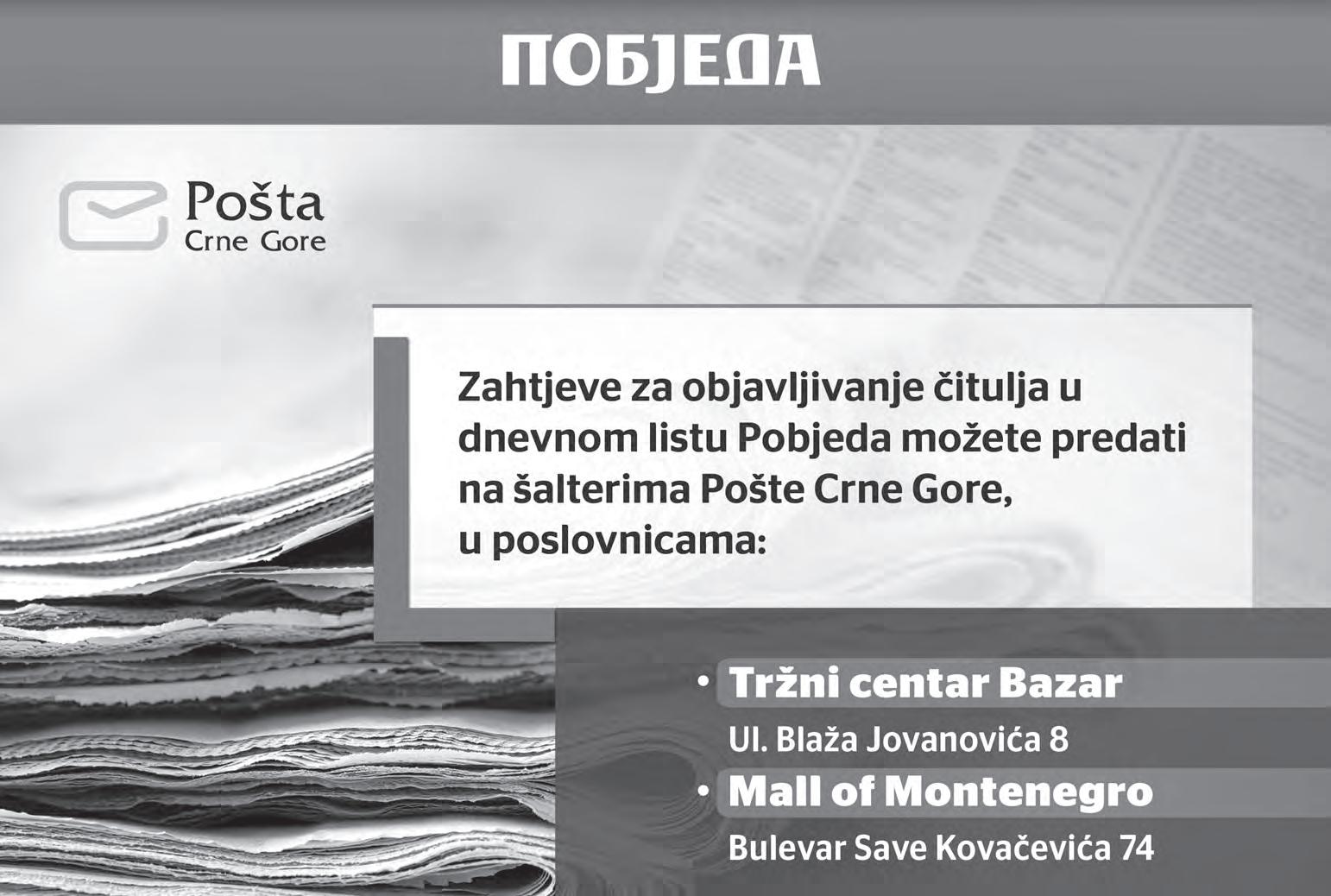 čitaoci i korisnici oglasnog prostora, materijal za objavljivanje čitulje možete poslati na