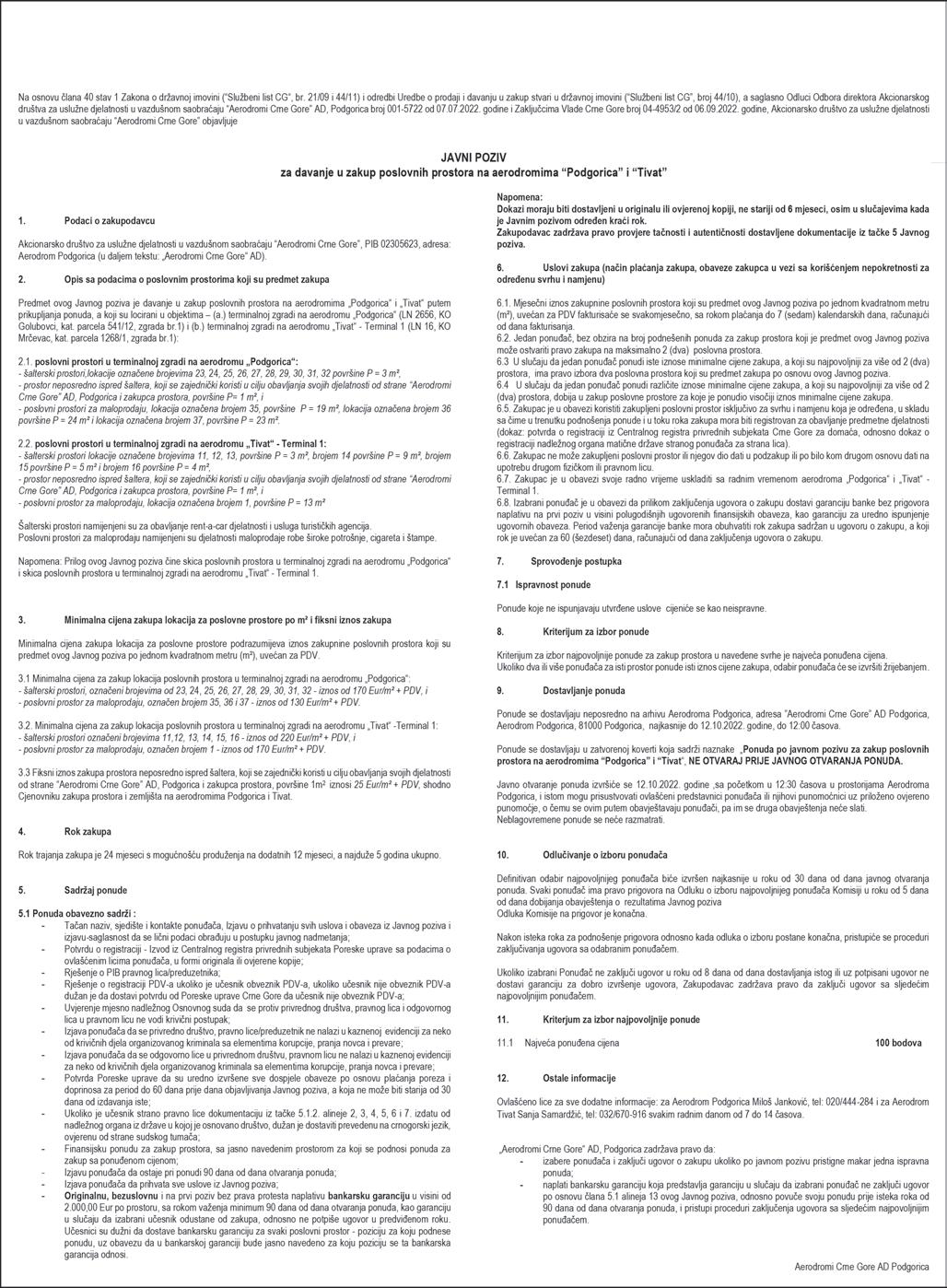 II Ročište za dvadeset petu prodaju navedenih nepokretnosti održaće se dana 24.10.2022.godine u 12.00 časova u prostorijama javnog izvršitelja koje se nalaze na adresi Ul. Novice Cerovića bb u Nikšiću. Prodaja nepokretnosti iz stava jedan ovog zaključka izvršiće se putem usmenog javnog nadmetanja. Nepokretnosti se mogu razgledati prema dogovoru sa javnim izvršiteljem.