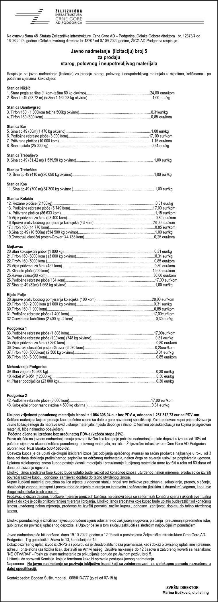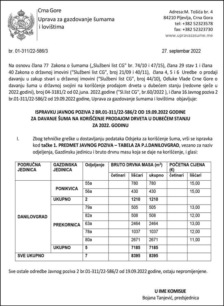 27Srijeda, 28. septembar 2022. Oglasi i obavještenja