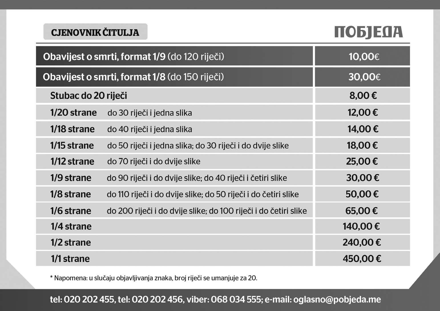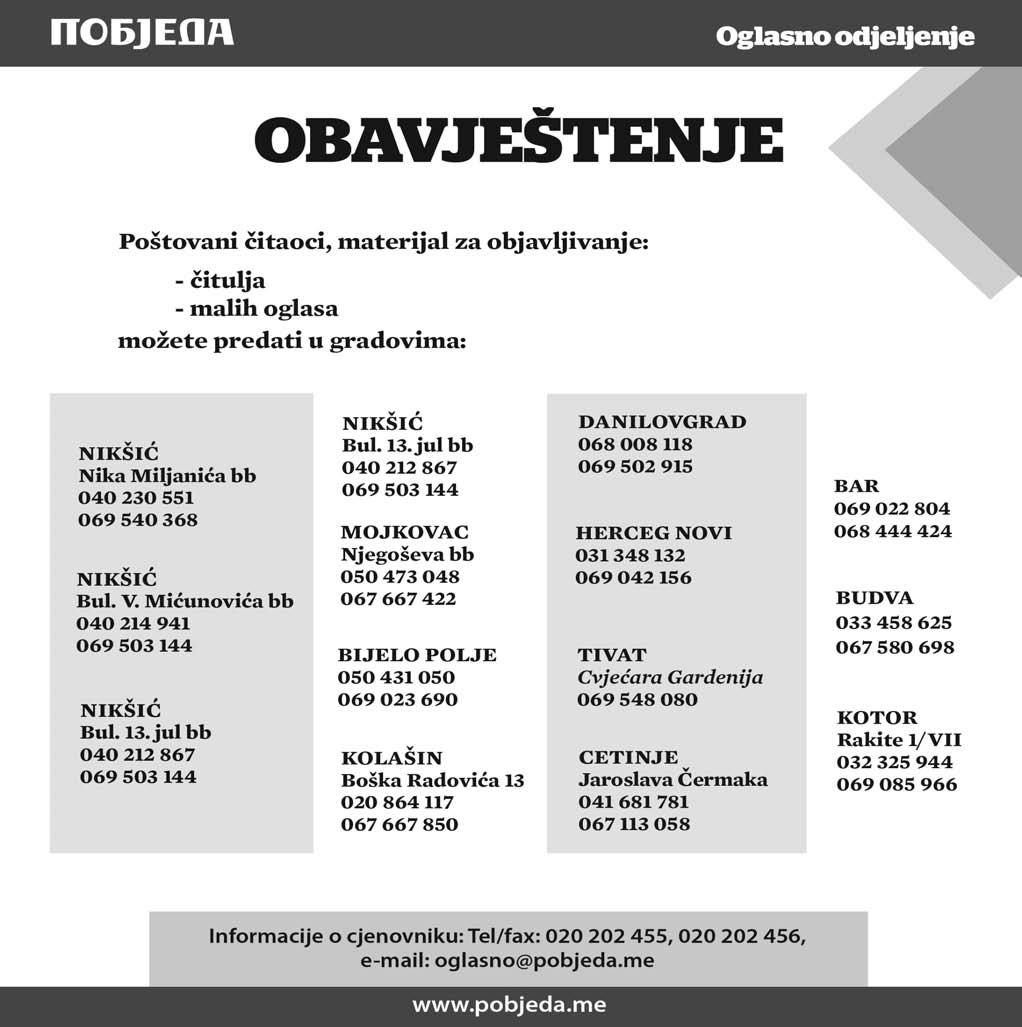 e-mail: oglasno@pobjeda.me