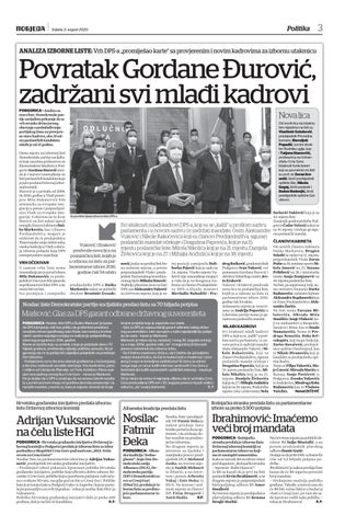 u odnosu na listu za par- nović, koji je na prošloj listi bio toj poziciji zamijenila Dali- drag Bošković, gradonačelnik U samom vrhu liste nema lamentarne izbore 2016. na sedmom mjestu, a potom borku Pejović koja je sada na Podgorice Ivan Vuković, već iznenađenja jer je još od izbora godine čak 54 odsto potpredsjednik Vlade i preds- 24. mjestu. Visoko mjesto Vu- pomenuta Gordana Đurović i VRH OČEKIVAN