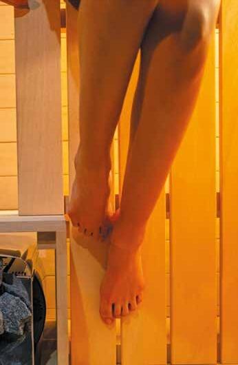 Allez-y nu ou couvert d’une serviette légère en coton, un tissu naturel et respirant. Évitez les vêtements en fibres synthétiques, qui ne permettent pas la transpiration et peuvent libérer des substances toxiques à des températures élevées. Commencez par des séances de 10 à 15 minutes pour habituer votre corps à la chaleur Réglez le sablier à l’intérieur de la cabine. Étendez une serviette sur le banc de façon à ce qu’aucune partie de votre corps ne touche le bois, afin de préserver les matériaux de votre sauna. Assis ou allongé, détendez-vous et laissez votre corps transpirer Les lumières de chromothérapie et la musique complètent l’éveil de tous les sens.