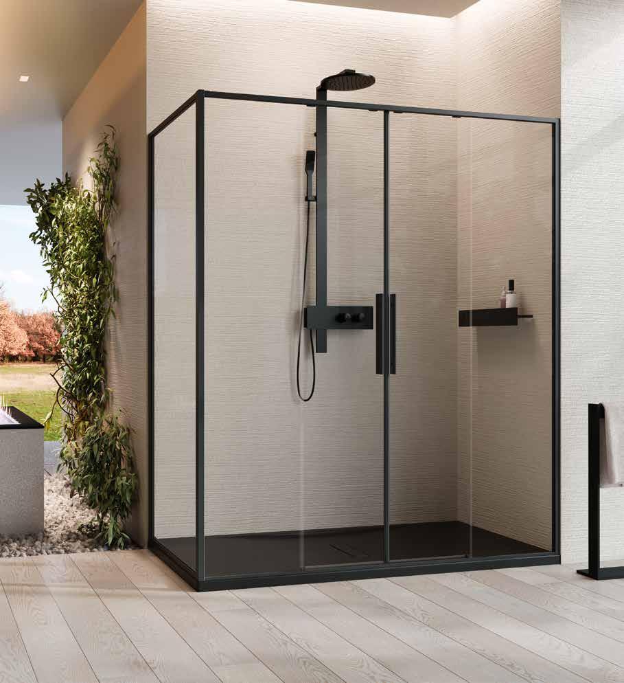 Riga representa la opción minimalista en línea con las últimas tendencias de decoración: duchas lineales con amplias superficies acristaladas personalizables.