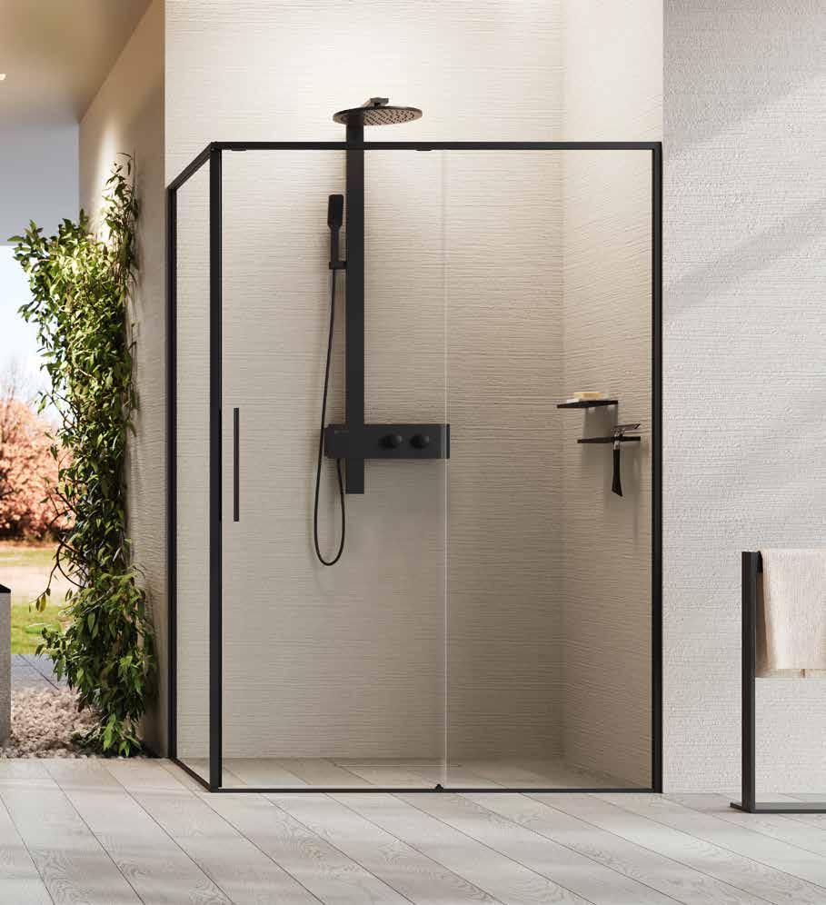 Riga ist die minimalistische Variante im Einklang mit den neuesten Einrichtungstrends: lineare Duschen mit großen, individuell gestaltbaren Glasflächen.