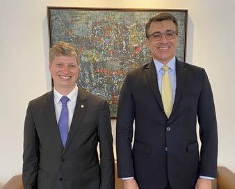 2021 e 2022. É, ainda, membro titu lar do Parlamento do Mercosul, pre sidente do Grupo Parlamentar de Amizade Brasil-Países Baixos e vice -presidente do Grupo Parlamentar de Amizade Brasil-Reino Unido, e Coordenador de Relações Interna cionais e Comércio Exterior da Fren te Parlamentar pelo Livre Mercado.