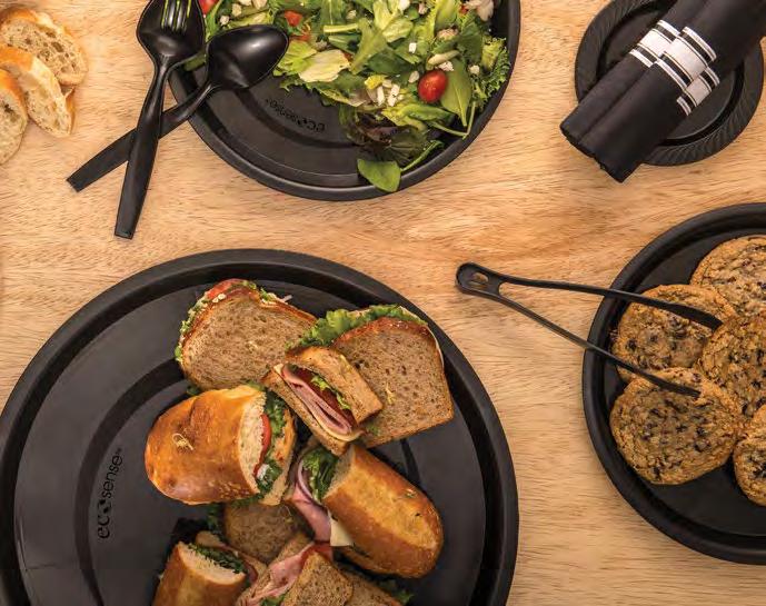 EcoSense™ Caterware – Our full line of drop-off catering essentials including plates, trays and serving utensils is now available with more than 40 percent recycled content. The new line uses 20 percent less plastic resin and reduces carbon footprint by at least 50 percent compared to polystyrene counterparts.