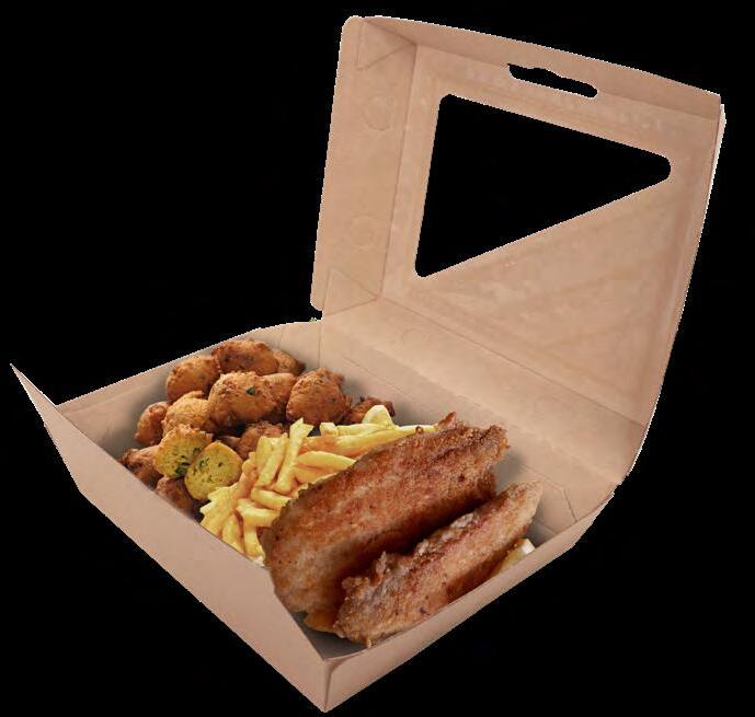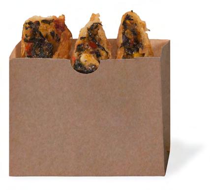 ◾ Food Integrity: the lightweight Eco-Flute material allows for moisture vapor transmission and resists grease to keep foods fresh and crisp.