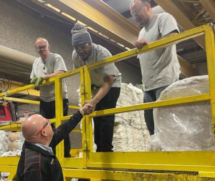 In 2023, we announced a collaboration with NOVA Chemicals to operate a new plastic film mechanical recycling facility in Connersville, Ind., which will bring 125 jobs to the community. We will bring our extensive experience—we operate two film recycling facilities of our own—to produce 100 million pounds of rPE for the market under NOVA’s SYNDIGO™ brand. The project will divert plastic film from landfills and demonstrate the viability of plastic recycling, reflecting our shared commitment to support recycling and the circular economy.