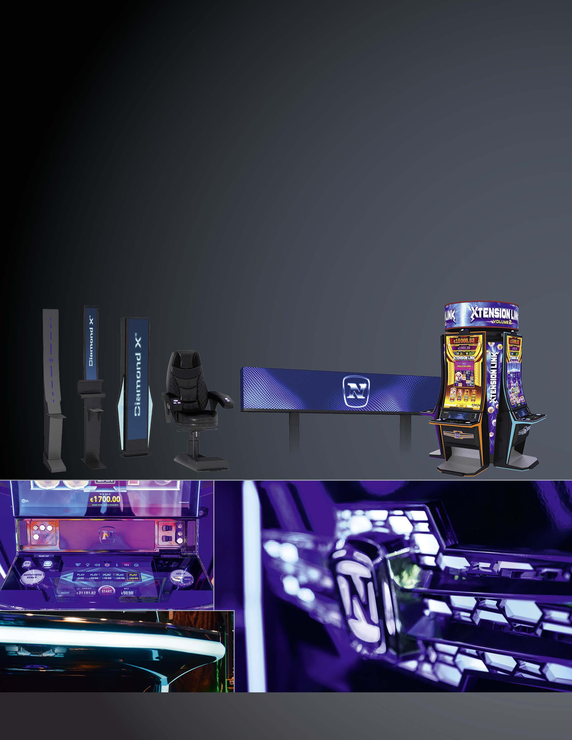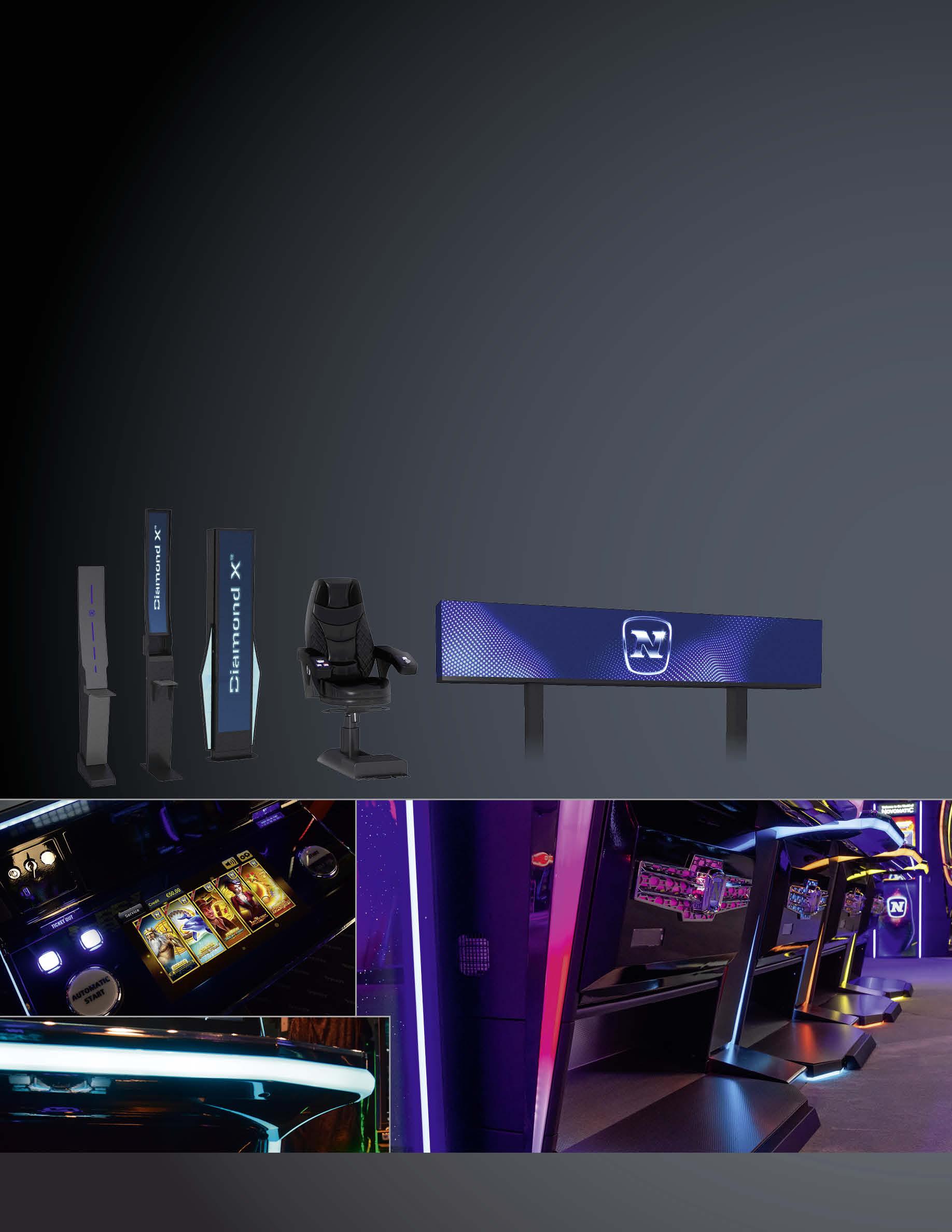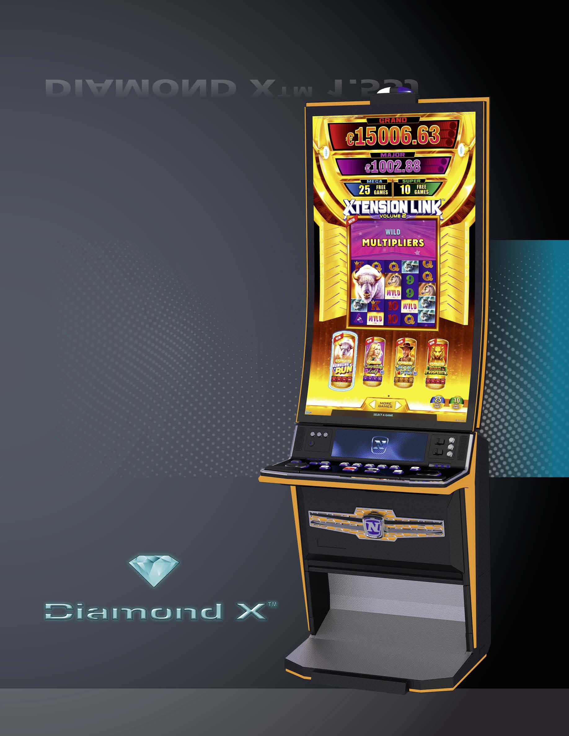 With two 32” full HD screens and an X-quisite LED silhouette, the DIAMOND X™ 2.32 is an X-ceptionally elegant multi-screen machine, featuring two game screens plus a sophisticated, integrated topper for enhanced Progressives support and high visibility on the gaming floor.
