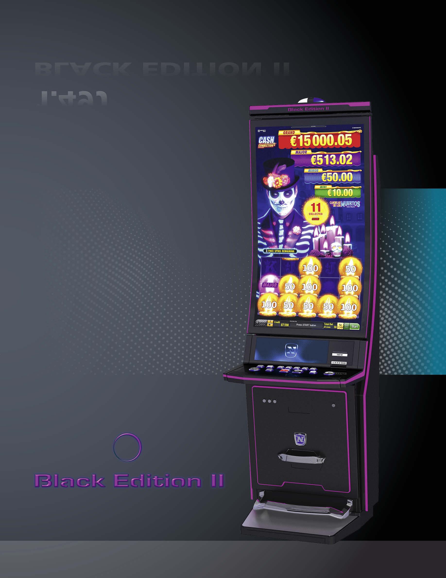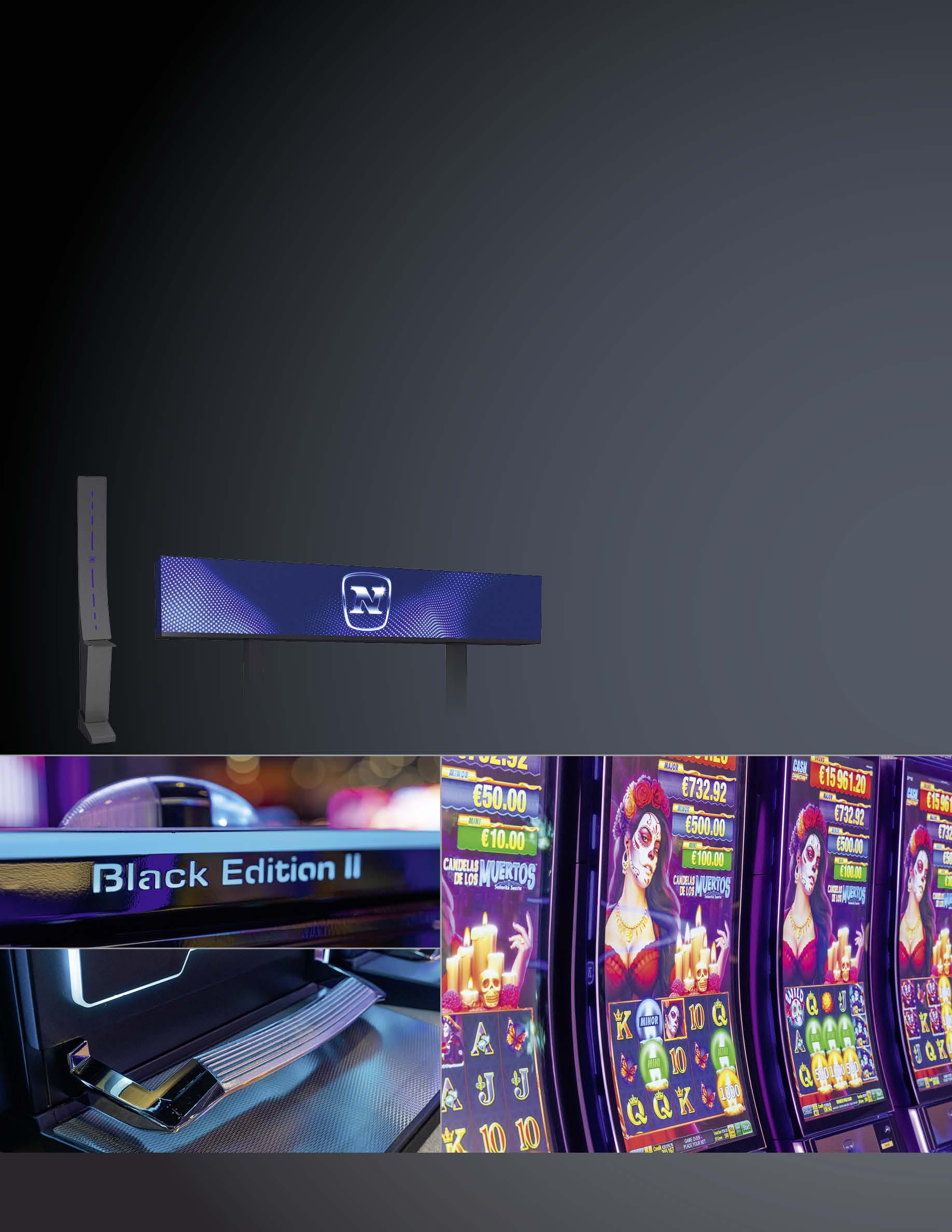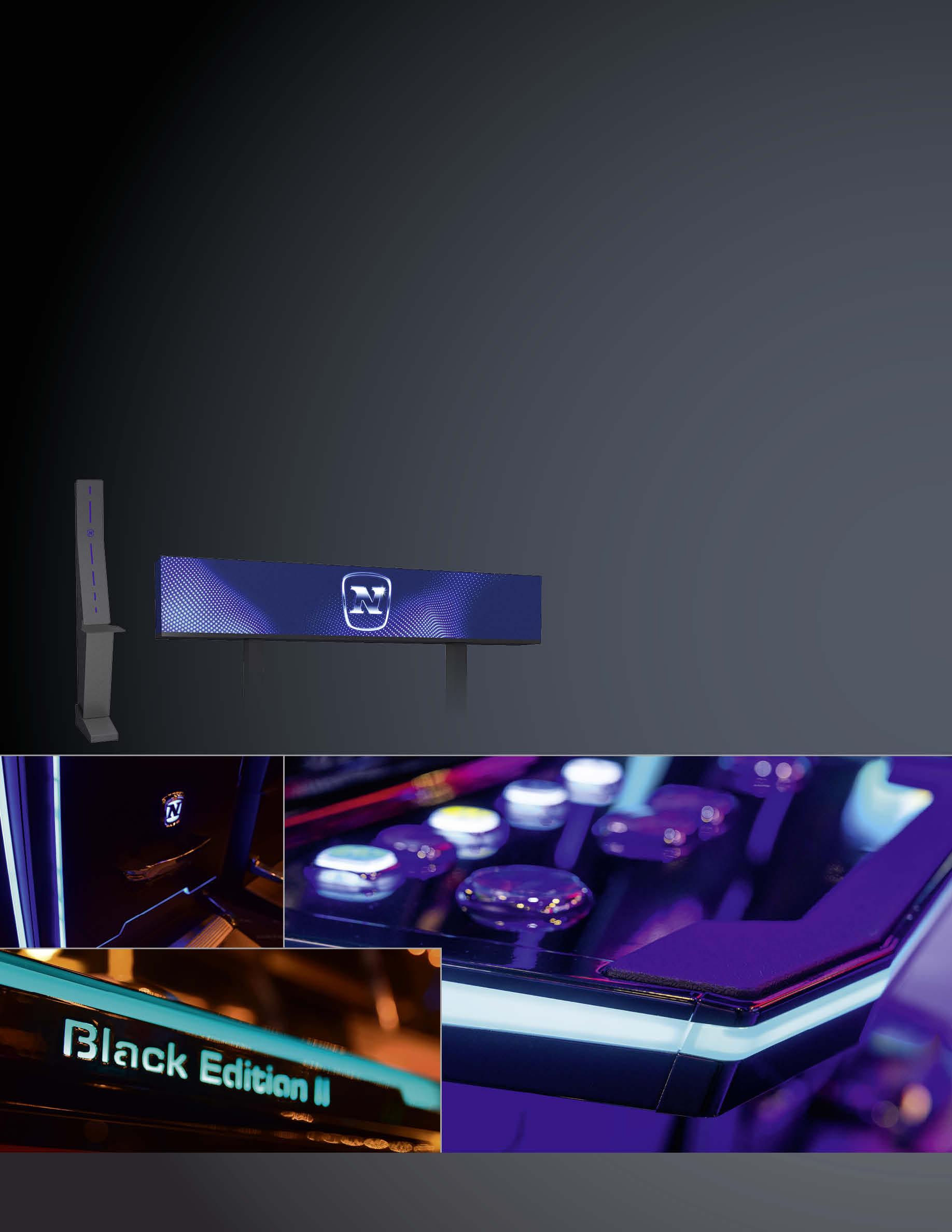 The successor of the popular “Black Edition” delivers modern cabinet design, perfectly angled screens and crisp game presentation against the backdrop of a Black Metro finish and contrasting ambient LED lighting concept.