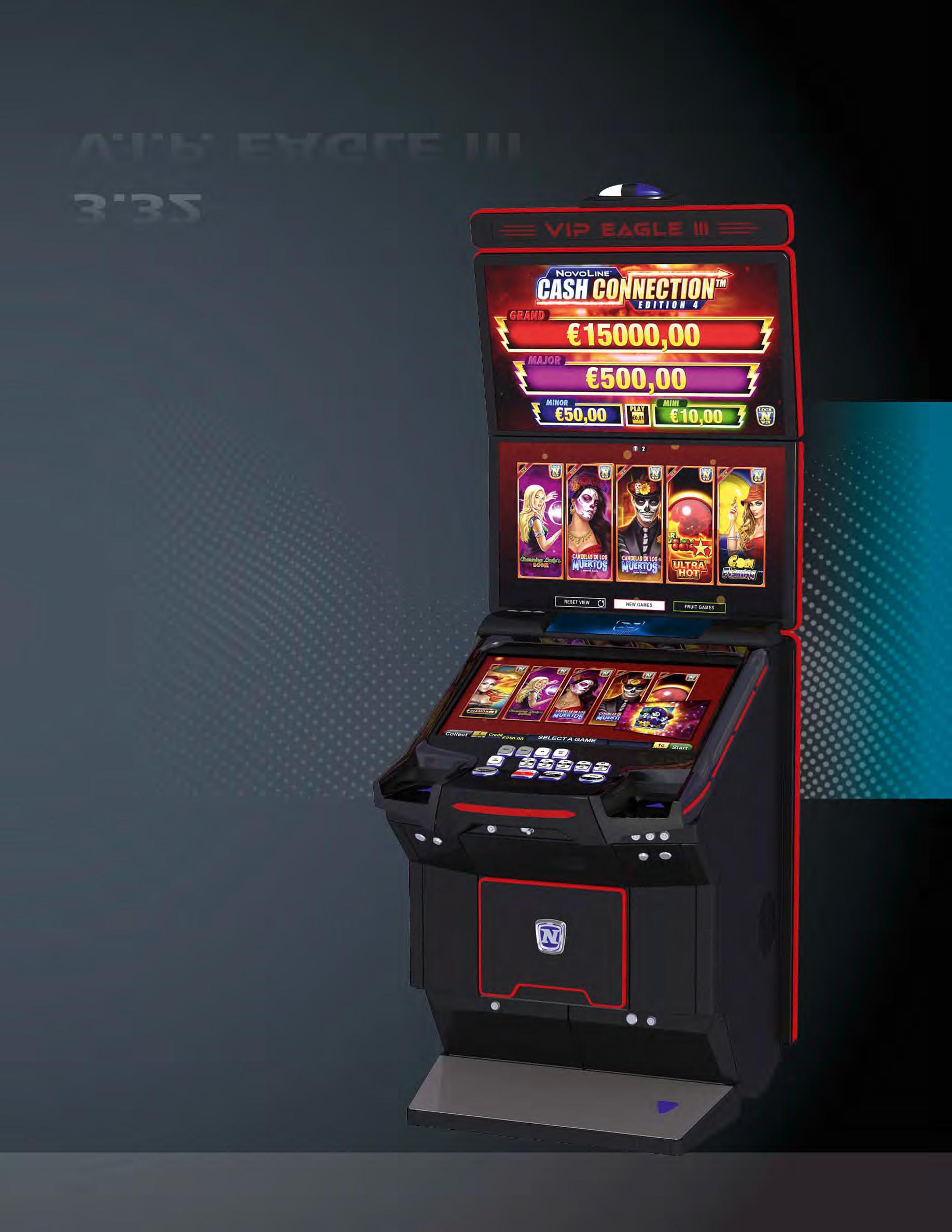 The V.I.P. Eagle advocates striking visibility and a soaring performance on every gaming floor. Combining the best of slant top and upright cabinet design, this machine is equipped with a touchscreen slant plus two ultra-sharp 32” game screens. Extra-wide LED effects synchronize with the game and create an intensely gripping gaming experience.