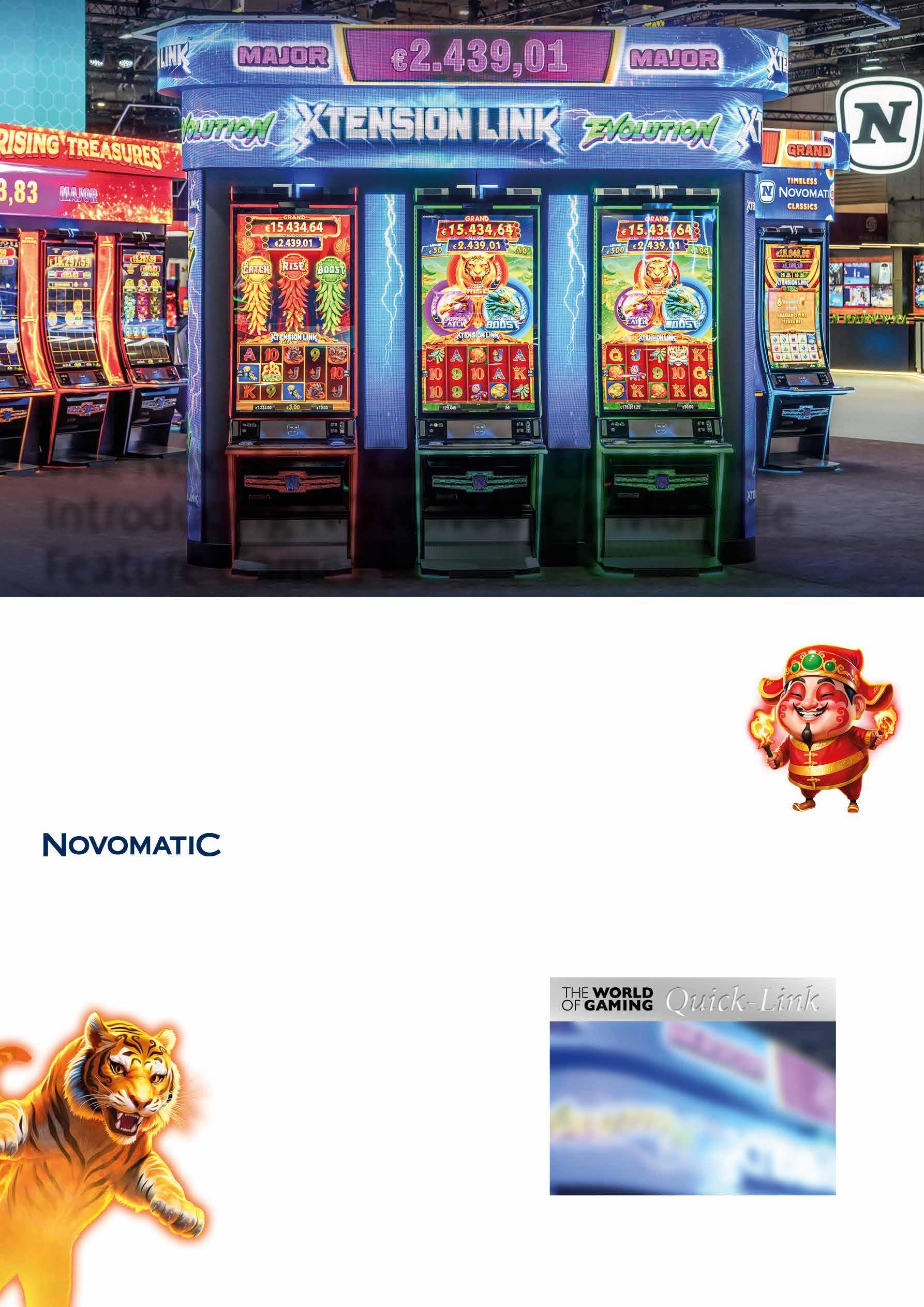 Cover NOVOMATIC made an impressive debut at ICE in Barcelona! Turn to page 42 to find out how NOVOMATIC dazzled the audience with groundbreaking gaming innovations like XTENSION LINK™ Evolution – Mighty Squad™. Titelbild NOVOMATIC feierte ein beeindruckendes ICE-Debüt in Barcelona! Erleben Sie ab Seite 48, wie NOVOMATIC mit bahnbrechenden Gaming-Innovationen glänzte, wie etwa mit XTENSION LINK™ Evolution –Mighty Squad™