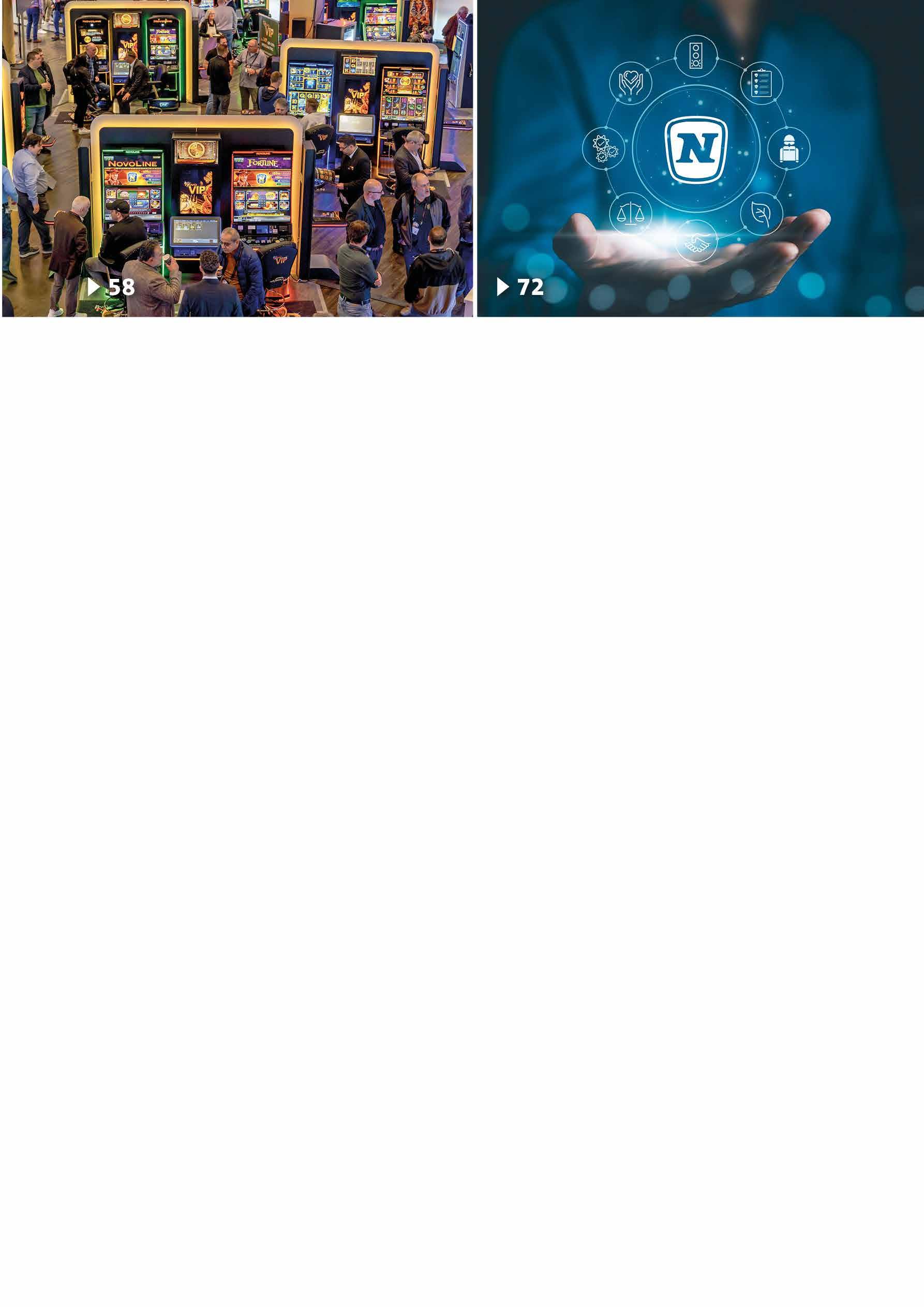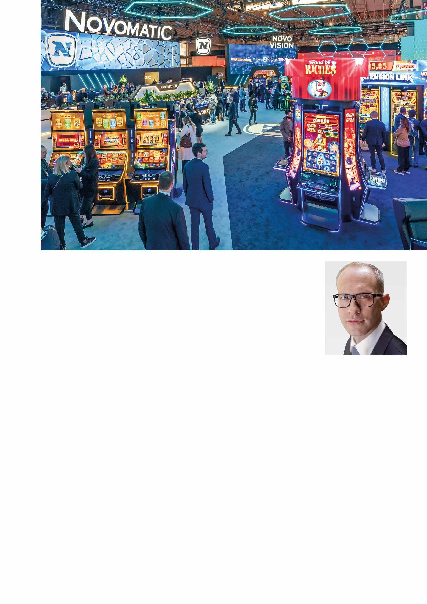 IMPRESSUM UND OFFENLEGUNG Medieninhaberin, Herausgeberin bzw. Dienstanbieterin: NOVO MATIC AG, Wiener Strasse 158, 2352 Gumpolds kirchen, Austria, FN: 69548 b, Landesgericht Wiener Neustadt, UID-Nummer: ATU 15031007, Unternehmensgegenstand: Entwicklung, Produktion, Vertrieb und Vermietung von Geldspielautomaten, Blattlinie: Information über internationale Märkte der Glücksspielbranche, Produkte und Dienstleistungen sowie Nachrichten der Unternehmensgruppe und ihrer Partner, Vorstand: Ryszard Presch, Johannes Gratzl, Stefan Krenn, Aufsichtsrat: Dr. Bernd Oswald, Martina Flitsch, Univ.-Prof. Robert Hofians, Berufsrecht: Gewerbeordnung: ris.bka.gv.at/GeltendeFassung.wxe? Abfrage=Bundesnormen&Gesetzesnummer=10007517, Gewerbebehörde: Bezirkshauptmannschaft Mödling, Mitglied der WKÖ, WKNÖ, Kontaktdaten: Manuela Kammerer, Group Marketing & PR, Tel.: +43 2252 870 778, Redaktion: Manuela Kammerer, Tatjana Brajdic, Paola Kosch, Hannes Reichmann, Alexandra Lindlbauer, Layout und Satz: Georg Möhrke, Bilder: NOVOMATIC, Thomas Meyer Photography, NLK Burchart, Druck: NOVOMATIC AG, Wiener Strasse 158, A-2352 Gumpoldskirchen, ISSN 1993-4289 (print), ISSN 1994-2478 (online)