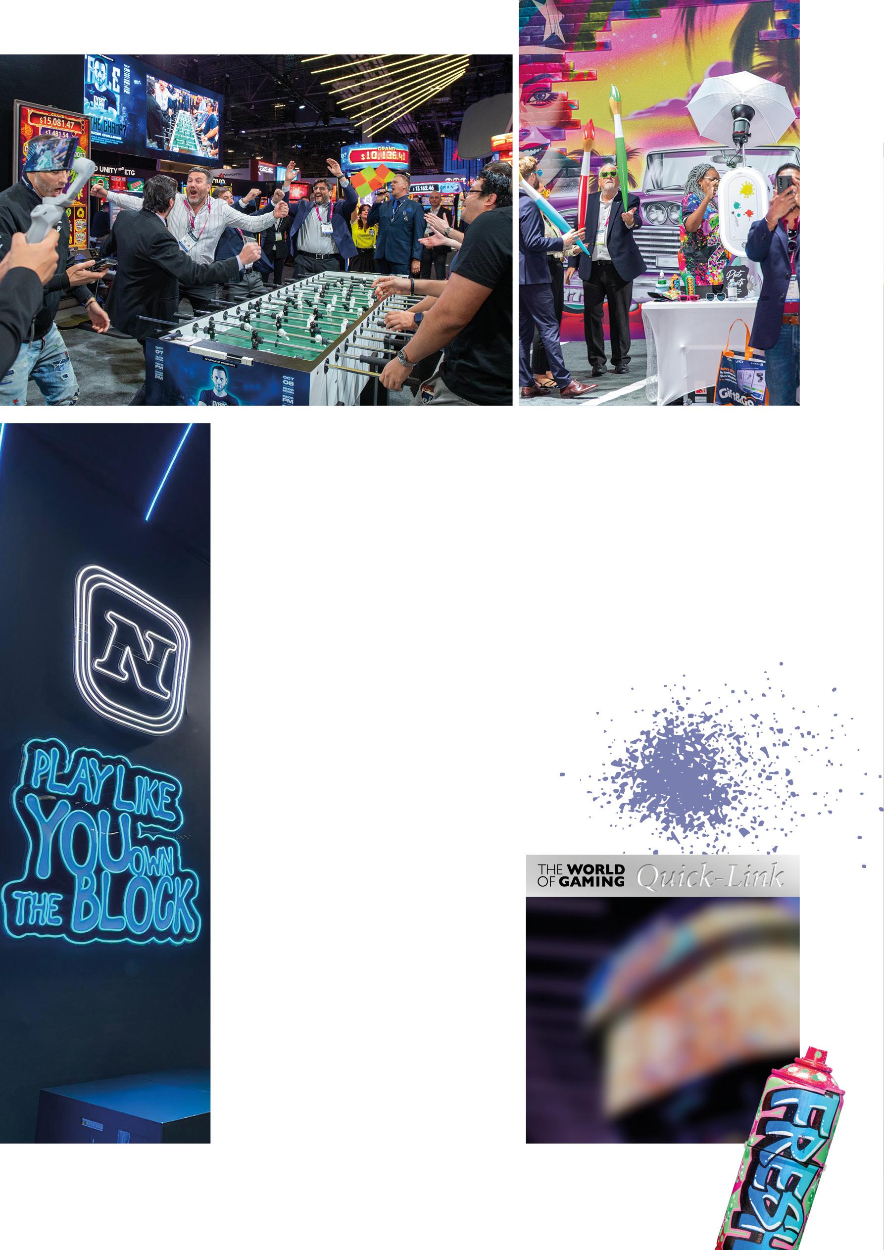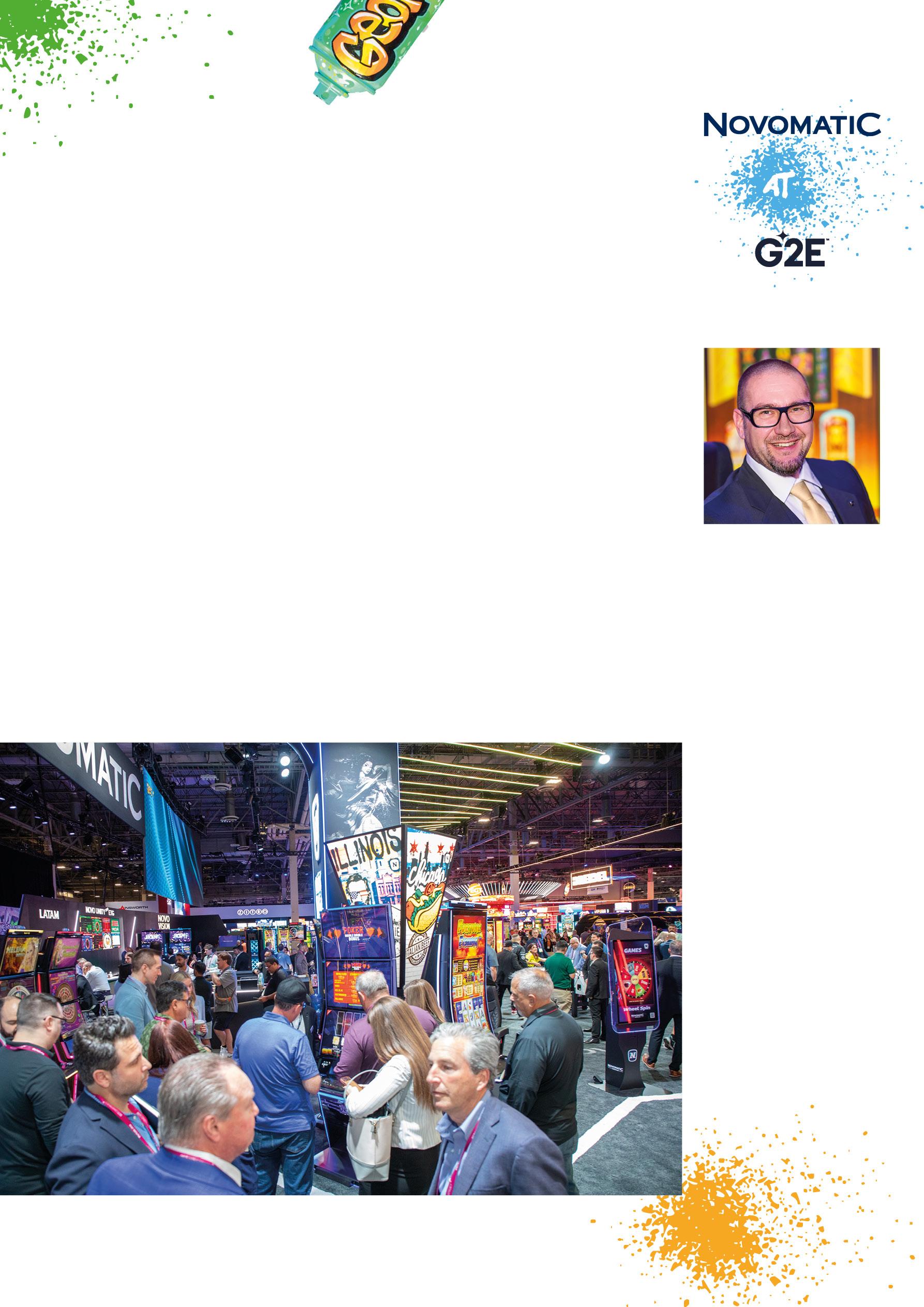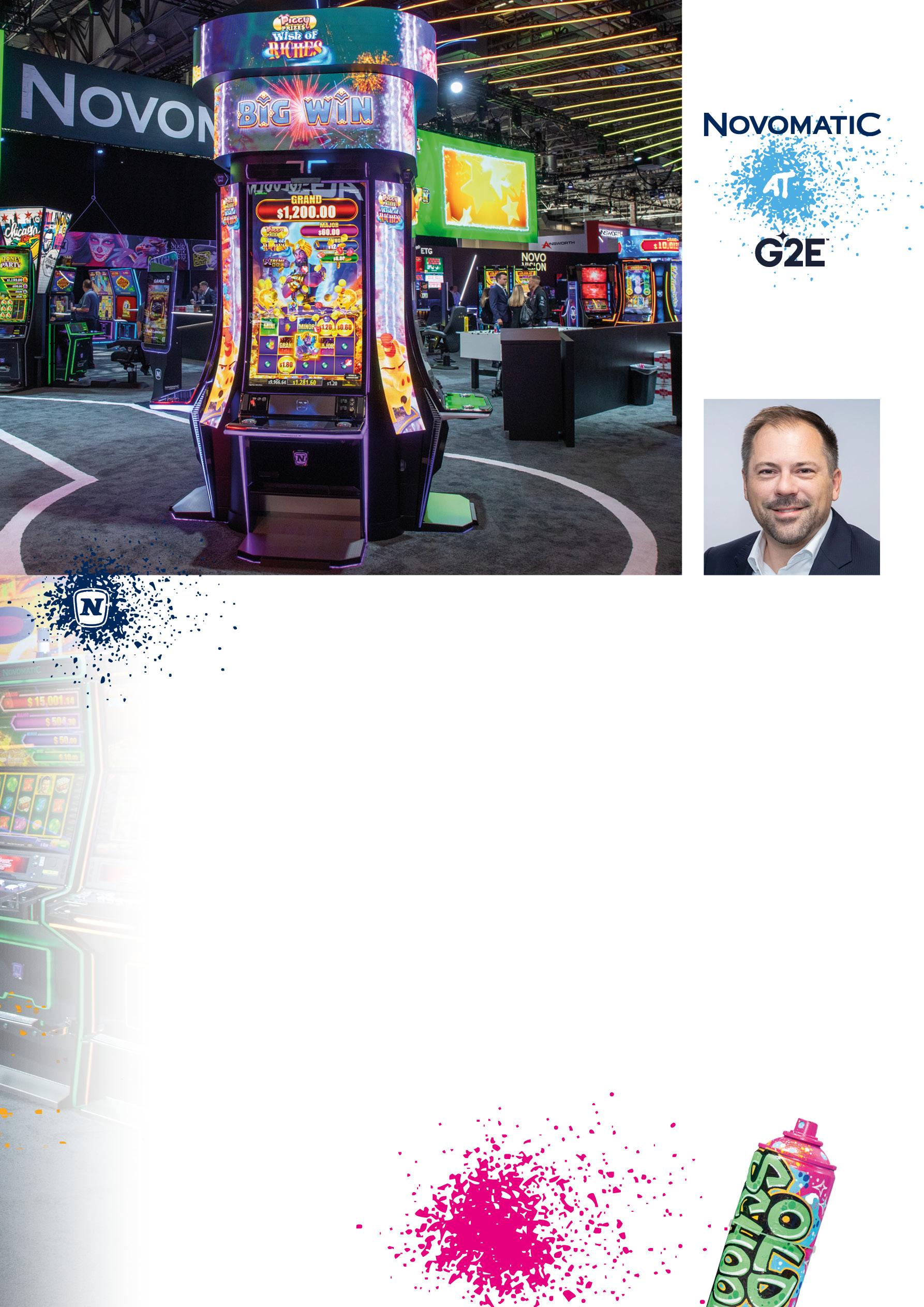 RP In October, G2E in Las Vegas proved to be an outstanding industry event thanks to record attendance figures and overwhelmingly positive feedback from operators and partners. By combining our innovative products with a powerful presentation of our company, we succeeded in making a lasting and truly unforgettable impression on our visitors. Large LED video walls, street art-inspired visuals, and interactive highlights transformed the booth into a dynamic meeting place that clearly underscored NOVOMATIC's visionary and futureoriented brand identity.