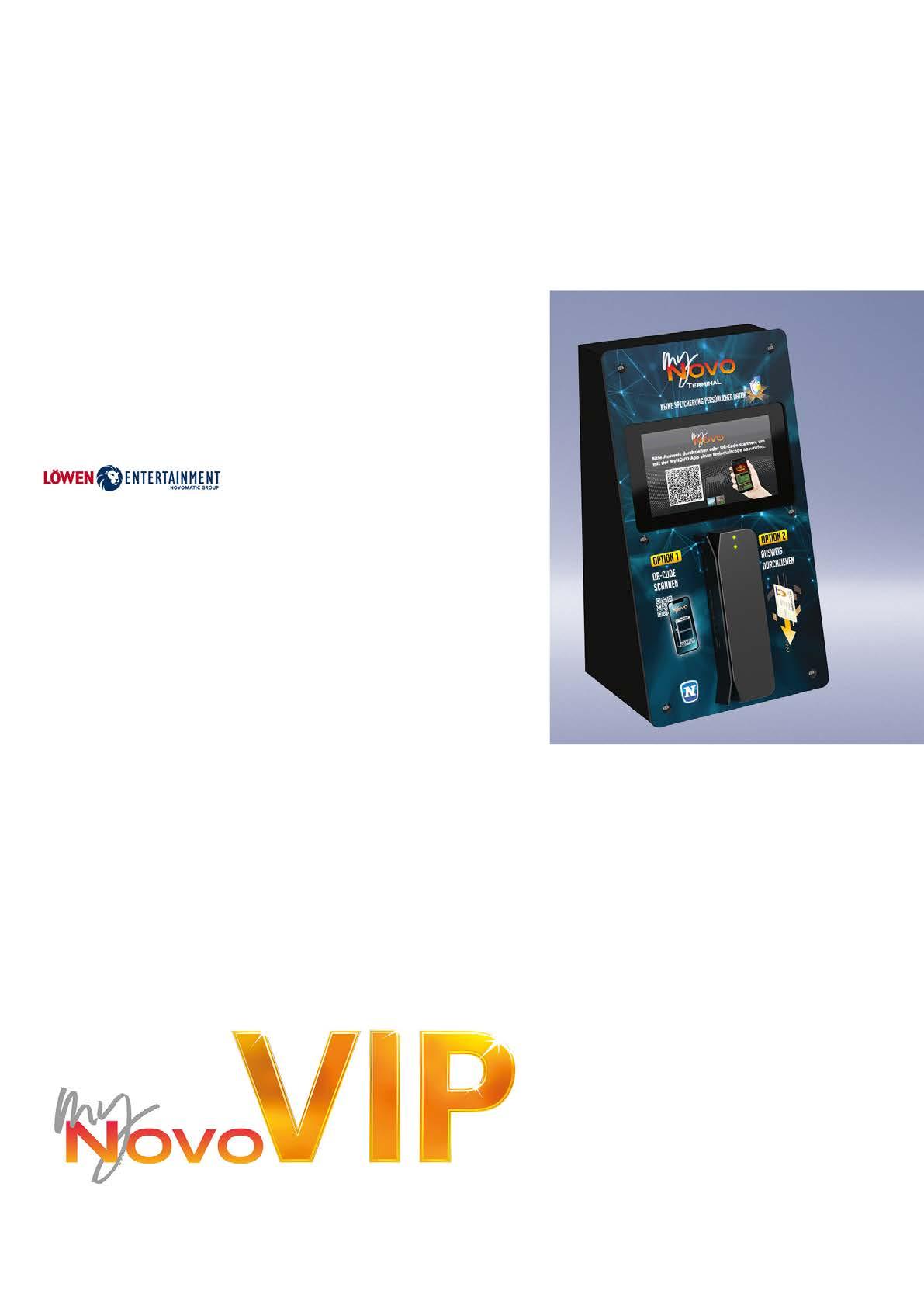 IMPRESSUM UND OFFENLEGUNG Medieninhaberin, Herausgeberin bzw. Dienstanbieterin: NOVO MATIC AG, Wiener Strasse 158, 2352 Gumpolds kirchen, Austria, FN: 69548 b, Landesgericht Wiener Neustadt, UID-Nummer: ATU 15031007, Unternehmensgegenstand: Entwicklung, Produktion, Vertrieb und Vermietung von Geldspielautomaten, Blattlinie: Information über internationale Märkte der Glücksspielbranche, Produkte und Dienstleistungen sowie Nachrichten der Unternehmensgruppe und ihrer Partner, Vorstand: Ryszard Presch, Johannes Gratzl, Stefan Krenn, Aufsichtsrat: Dr. Bernd Oswald, Martina Flitsch, Dr. Haig Asenbauer, Univ.-Prof. Robert Hofians, Berufsrecht: Gewerbeordnung: ris.bka.gv.at/GeltendeFassung. wxe?Abfrage=Bundesnormen&Gesetzesnummer=10007517, Gewerbebehörde: Bezirkshauptmannschaft Mödling, Mitglied der WKÖ, WKNÖ, Kontaktdaten: Manuela Kammerer, Group Marketing & PR, Tel.: +43 2252 870 778, Redaktion: Manuela Kammerer, Tatjana Brajdic, Hannes Reichmann, Alexandra Lindlbauer, Layout und Satz: Georg Möhrke, Bilder: NOVOMATIC, Thomas Meyer Photography, NLK Burchart, Druck: NOVOMATIC AG, Wiener Strasse 158, A-2352 Gumpoldskirchen, ISSN 1993-4289 (print), ISSN 1994-2478 (online)