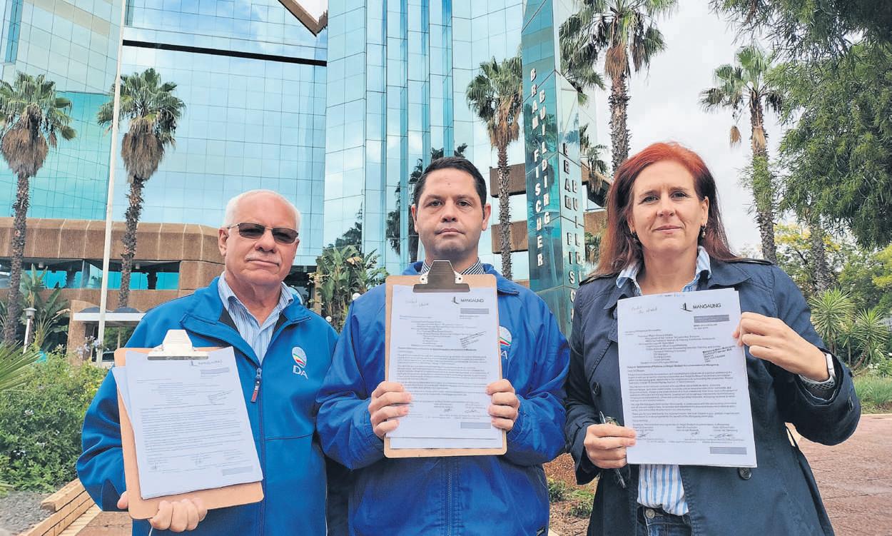 In front of the Bram Fischer Building,the headquarters of the Mangaung Metro,are from the left councillors Hennie van Niekerk (ward 23),Tjaart van der Walt (ward 26) and Corize van Rensburg (ward 20) Photo: Lientjie Mentz