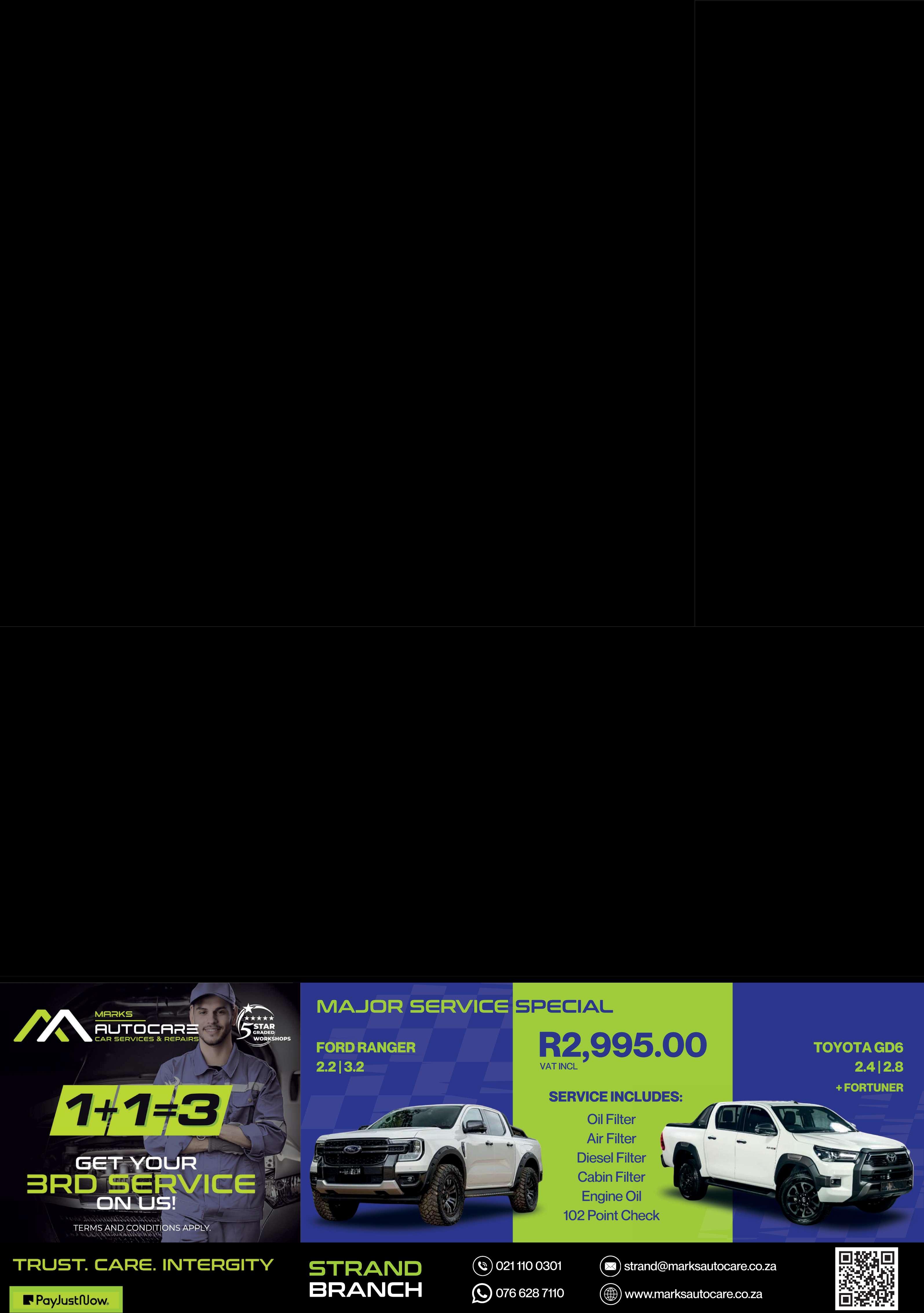 Strand: It’s Pensioner’s Day at SUNSET BOOKS in Beach Road, with activities starting with a free knitting circle at 13:30 It is followed by an informative talk by Corlea Viljoen (general manager of Robin Trust) and registered nurse Tia Chivell, who will share their knowledge, stories and practical insights on understanding, managing and finding ways to fight back against dementia The free talk will be held from 14:30 to 15:30; reservations are essential on 068 385 2563