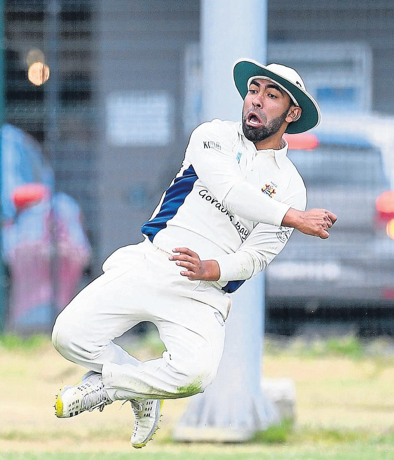 Waleed Smith, captain of Hottentots Holland Cricket Club, leading by example in the field in their match against Gugulethu on Saturday (19 October). Photo: Peter Bee