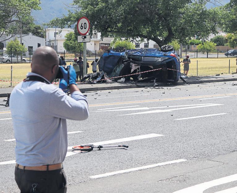The SUV sped through Pniël on the Helshoogte Road and crashed into two vehicles before rolling and crashed into the tree.