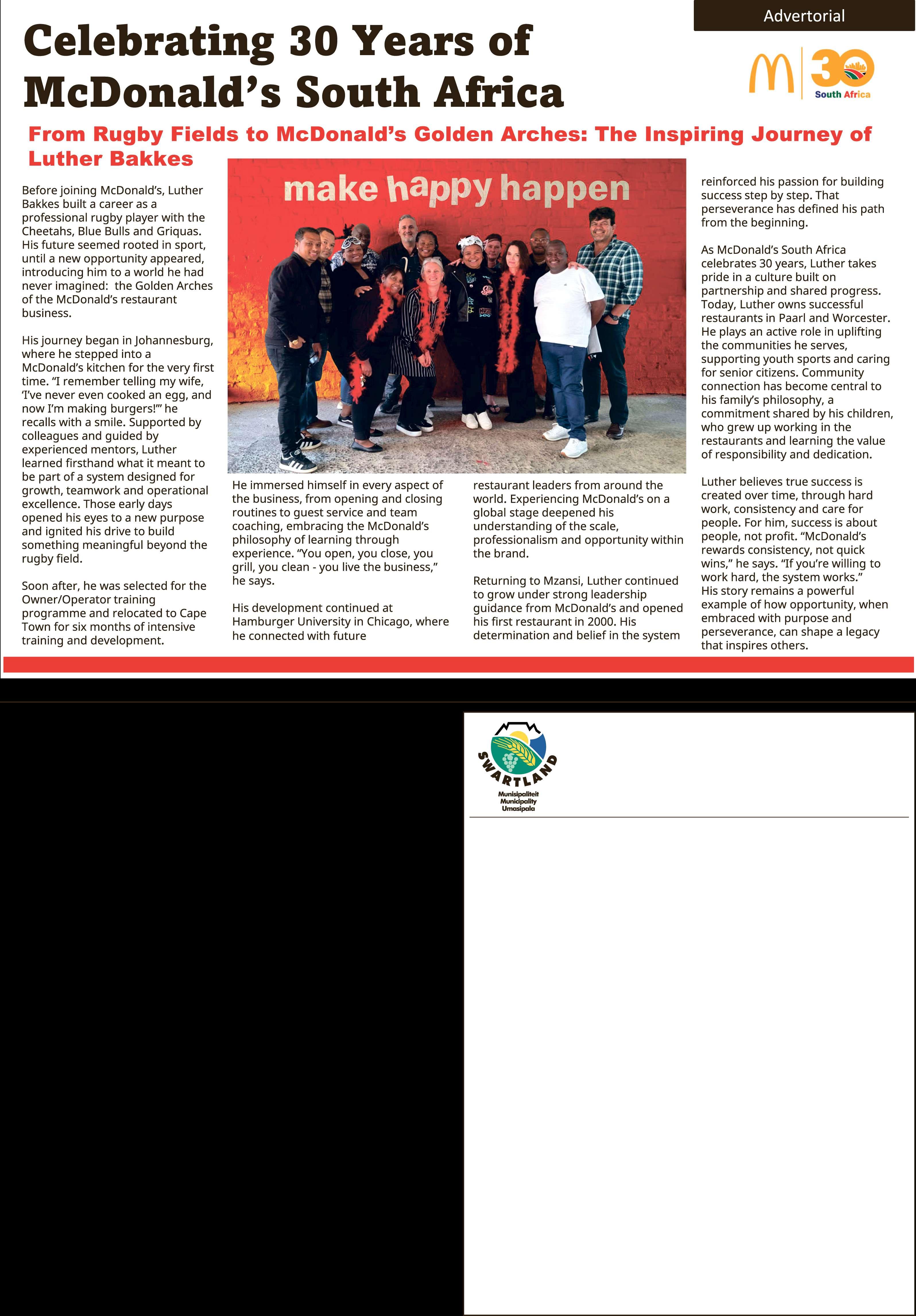 Notice is hereby given in terms of section 55(1) of the By-law on Municipal Land Use Planning that the abovementioned application has been received and is available for inspection from Monday to Thursday between 08:00-13:00 and 13:45 - 17:00 and Friday 08:00-13:00 and 13:45 - 15:45 at the Department Development Management, office of the Senior Manager : Development Management, Municipal Office, Church Street, Malmesbury Any written comments whether an objection or support may be addressedintermsofsection60ofthesaidlegislationtoTheMunicipalManager,PrivateBagX52, Malmesbury, 7299/Fax – 022-487 9440/e-mail – swartlandmun@swartland.org.za on or before 23 January 2026 at 15:45, quoting your name, address or contact details as well as the preferred method of communication, interest in the application and reasons for comments. Telephonic enquiriescanbemadetothetownplanningdivision(AlwynBurger,HermanOlivierorAnneliedeJager)at 022-4879400.TheMunicipalitymayrefusetoacceptcommentreceivedaftertheclosingdate.Anyperson whocannotwritewillbeassistedbyamunicipalofficialbytranscribingtheircomments. Municipal Office J J SCHOLTZ ChurchStreet MunicipalManager MALMESBURY 12December 2025