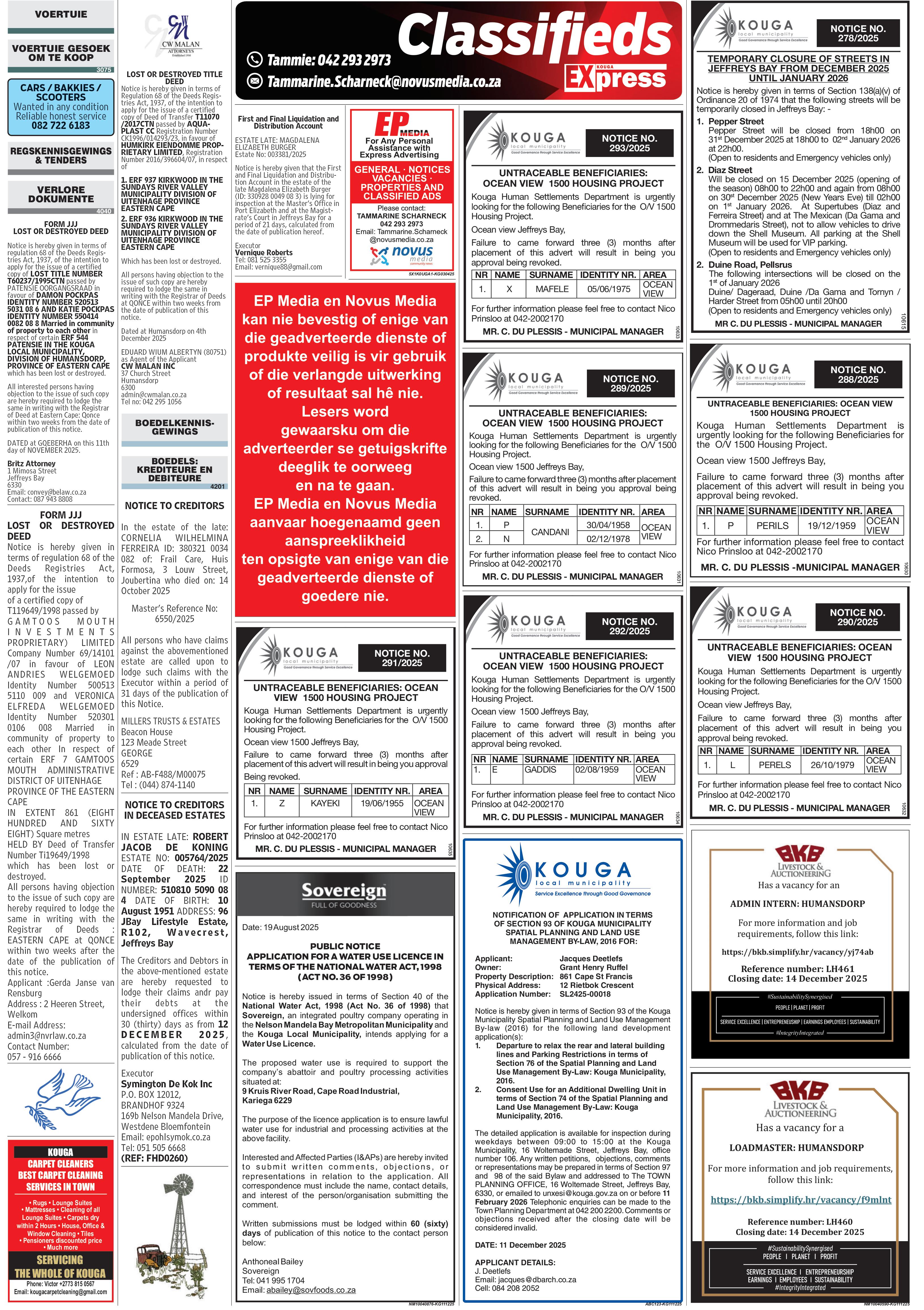The last edition of the Kouga Express for 2025 will be on 18 December 2025 We’ll be back in 2026 on 8 January